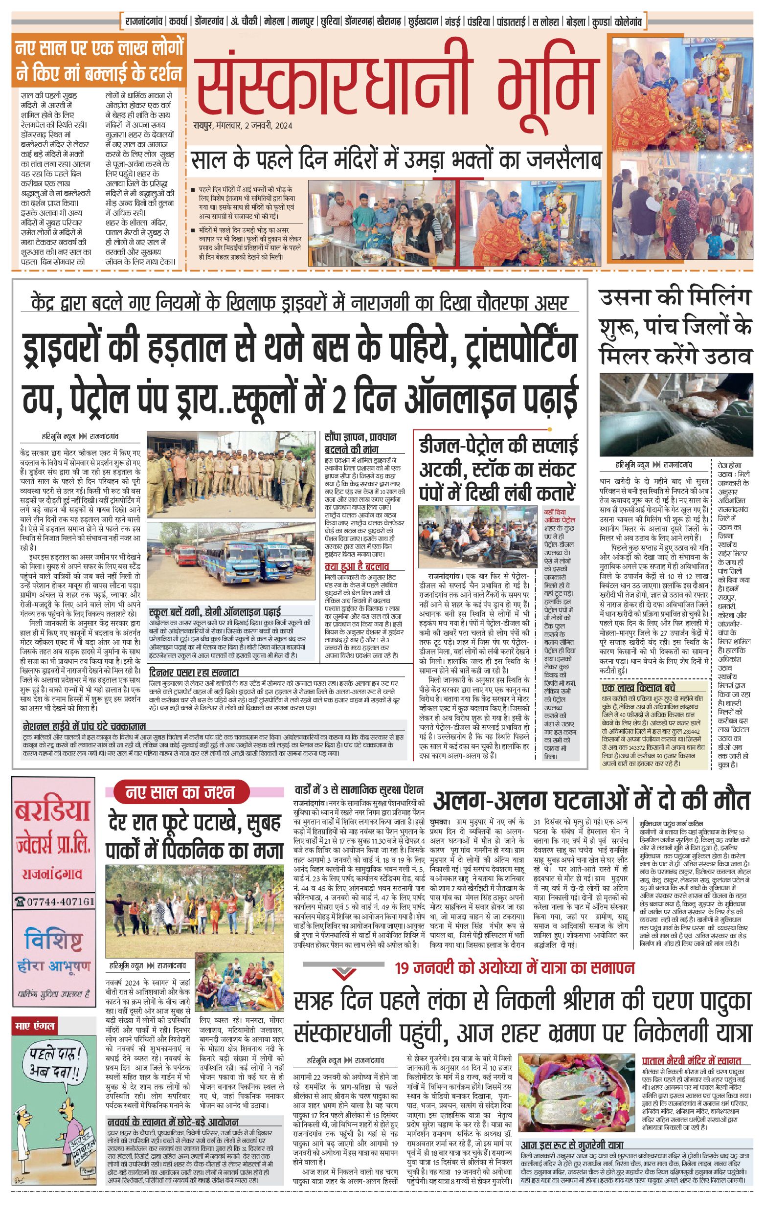 संस्कारधानी भूमि - 02 Jan 2024 - - Page 1