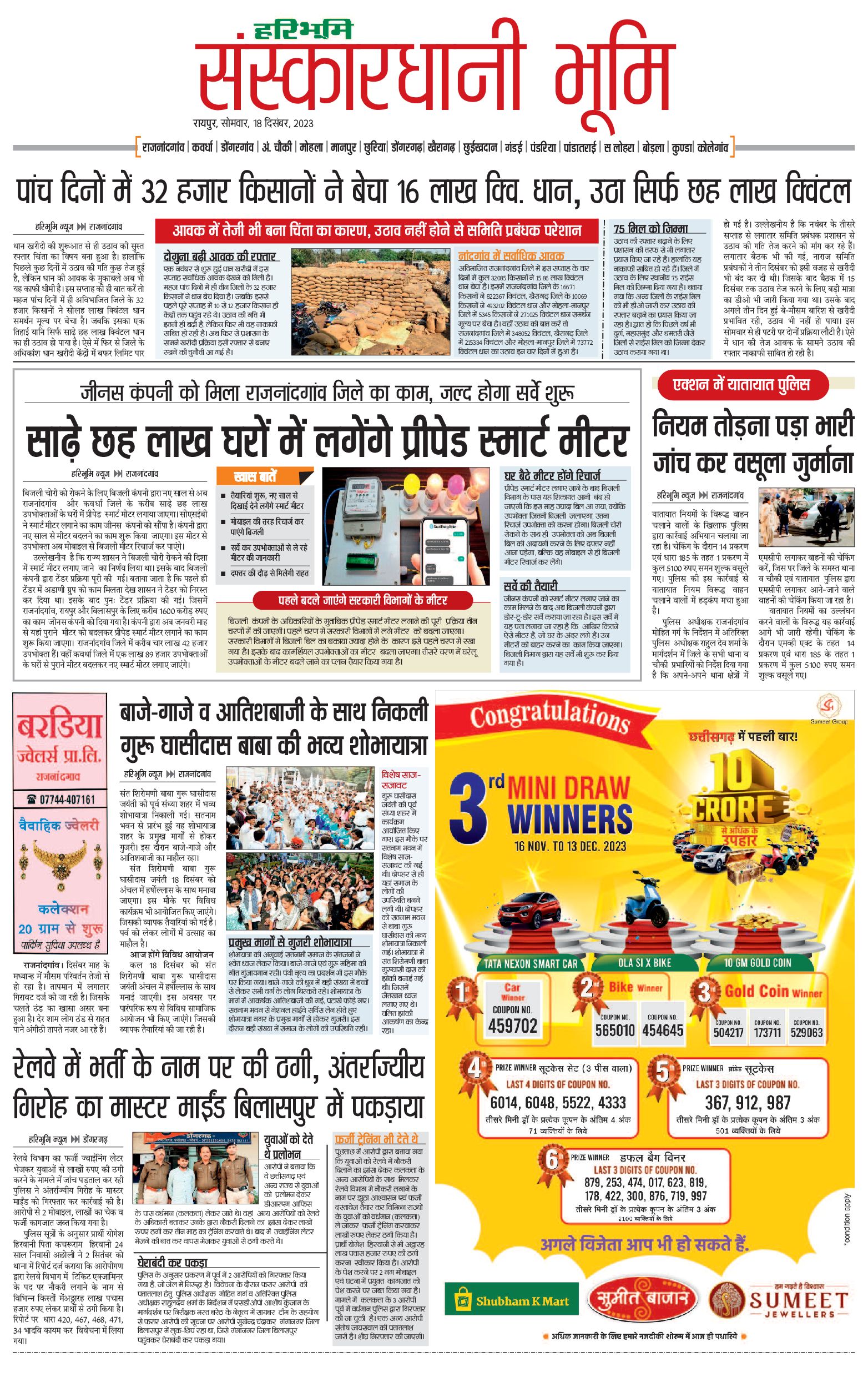 संस्कारधानी भूमि - 18 Dec 2023 - - Page 1
