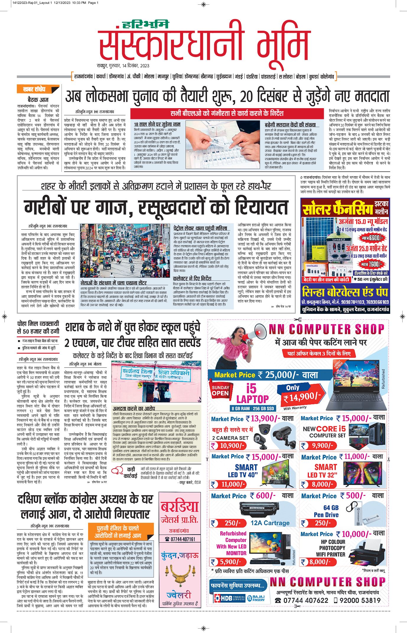 संस्कारधानी भूमि - 14 Dec 2023 - - Page 1