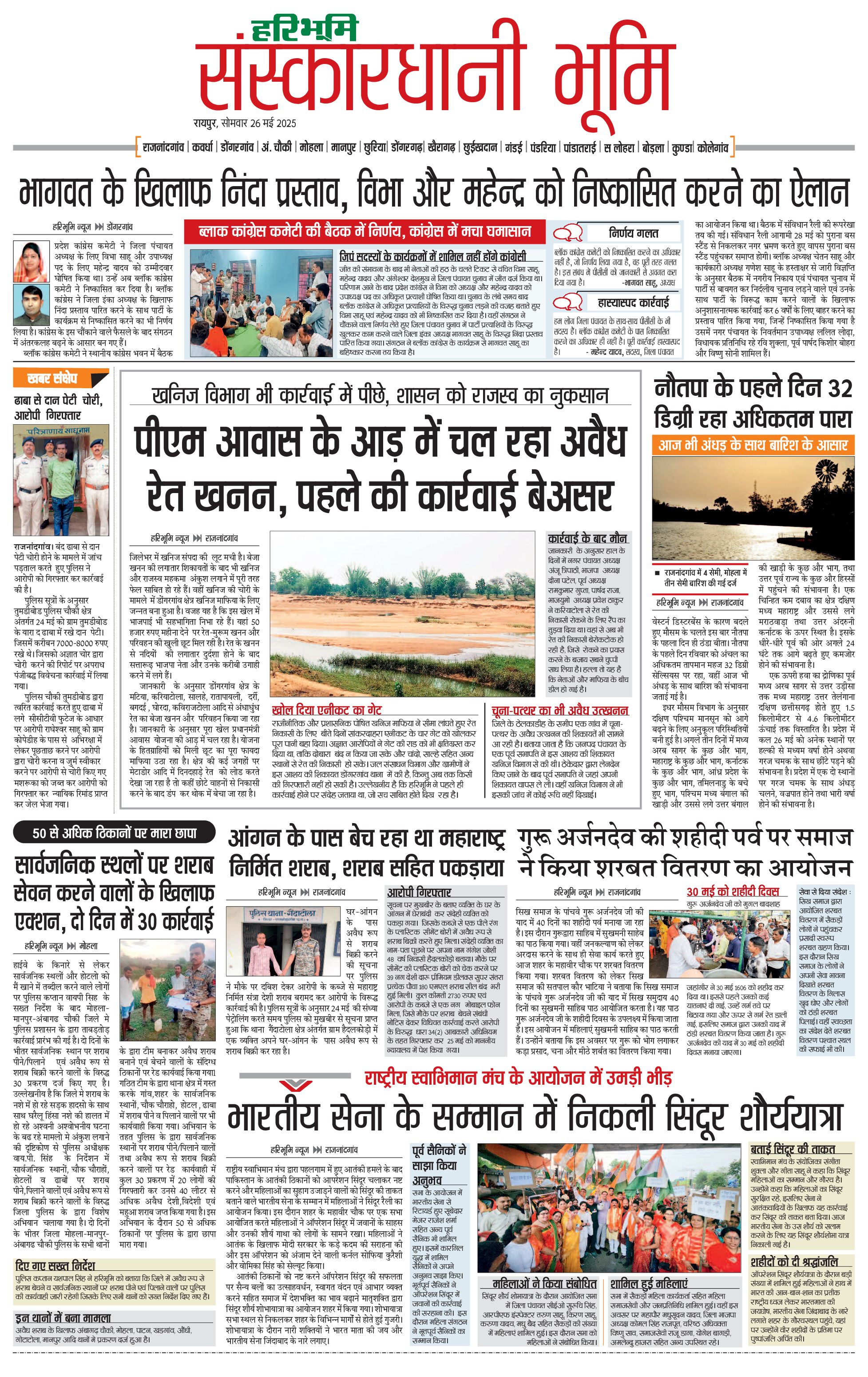 संस्कारधानी भूमि - 26 May 2025 - - Page 1