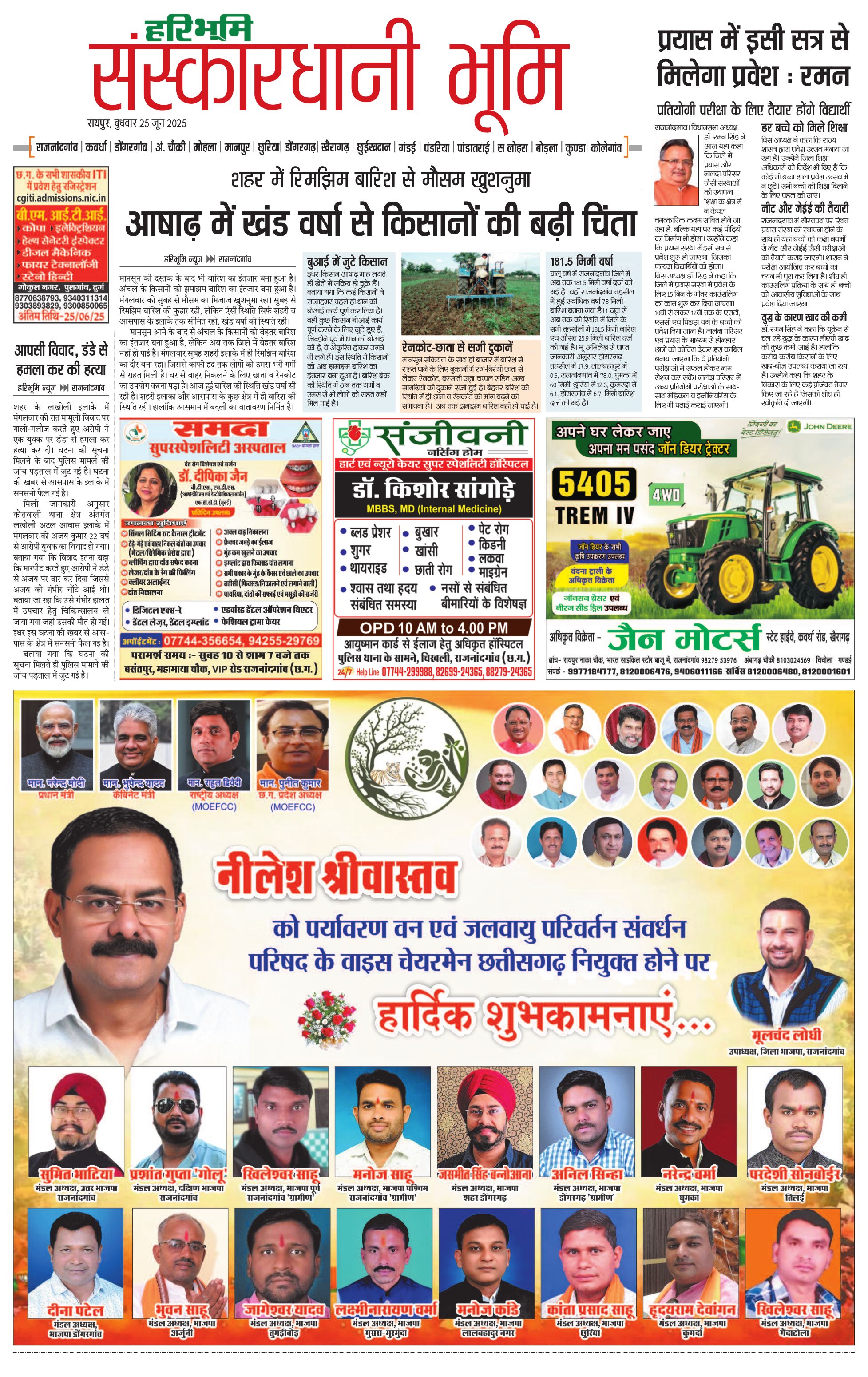 संस्कारधानी भूमि - 25 Jun 2025 - - Page 1