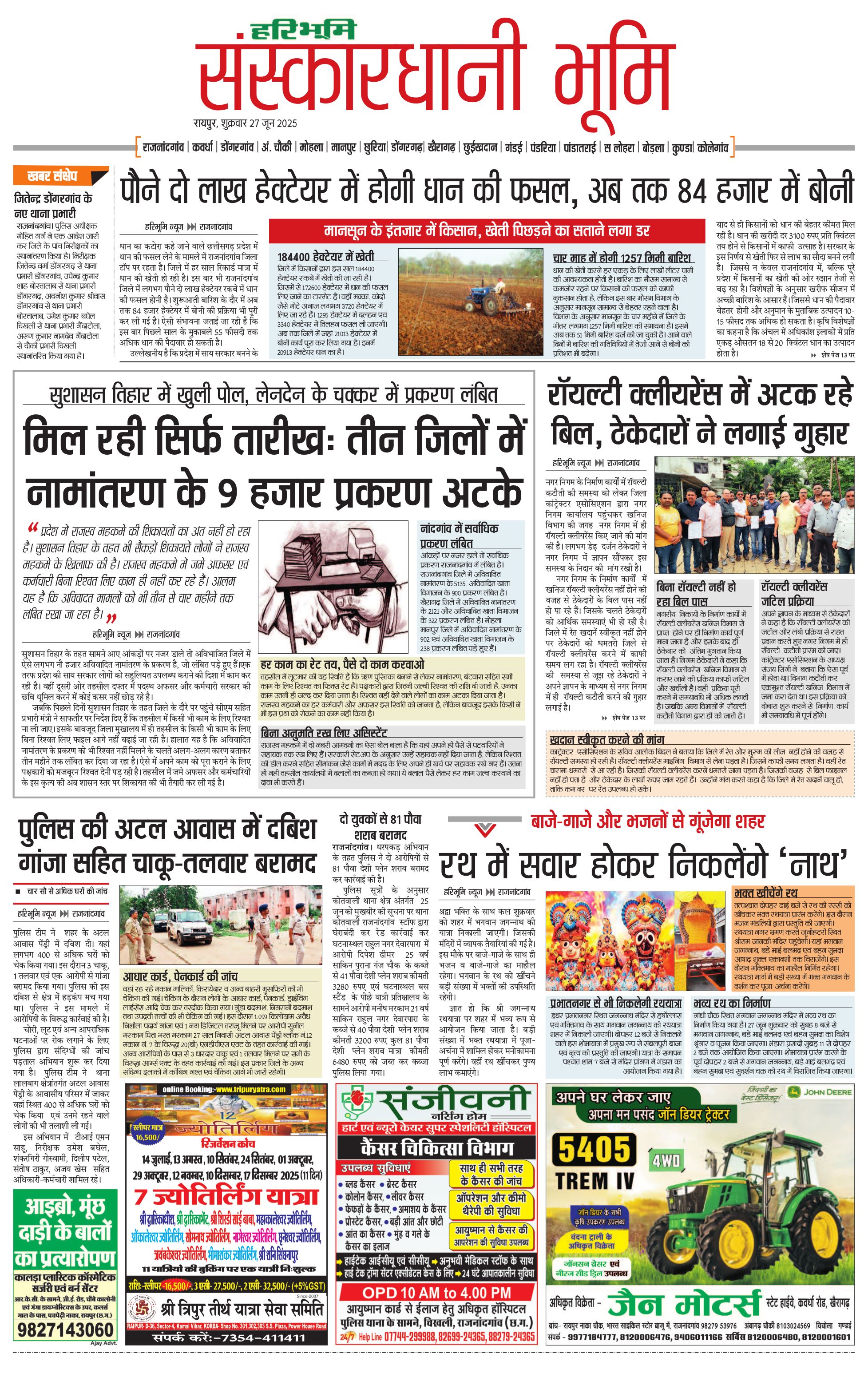 संस्कारधानी भूमि - 27 Jun 2025 - - Page 1