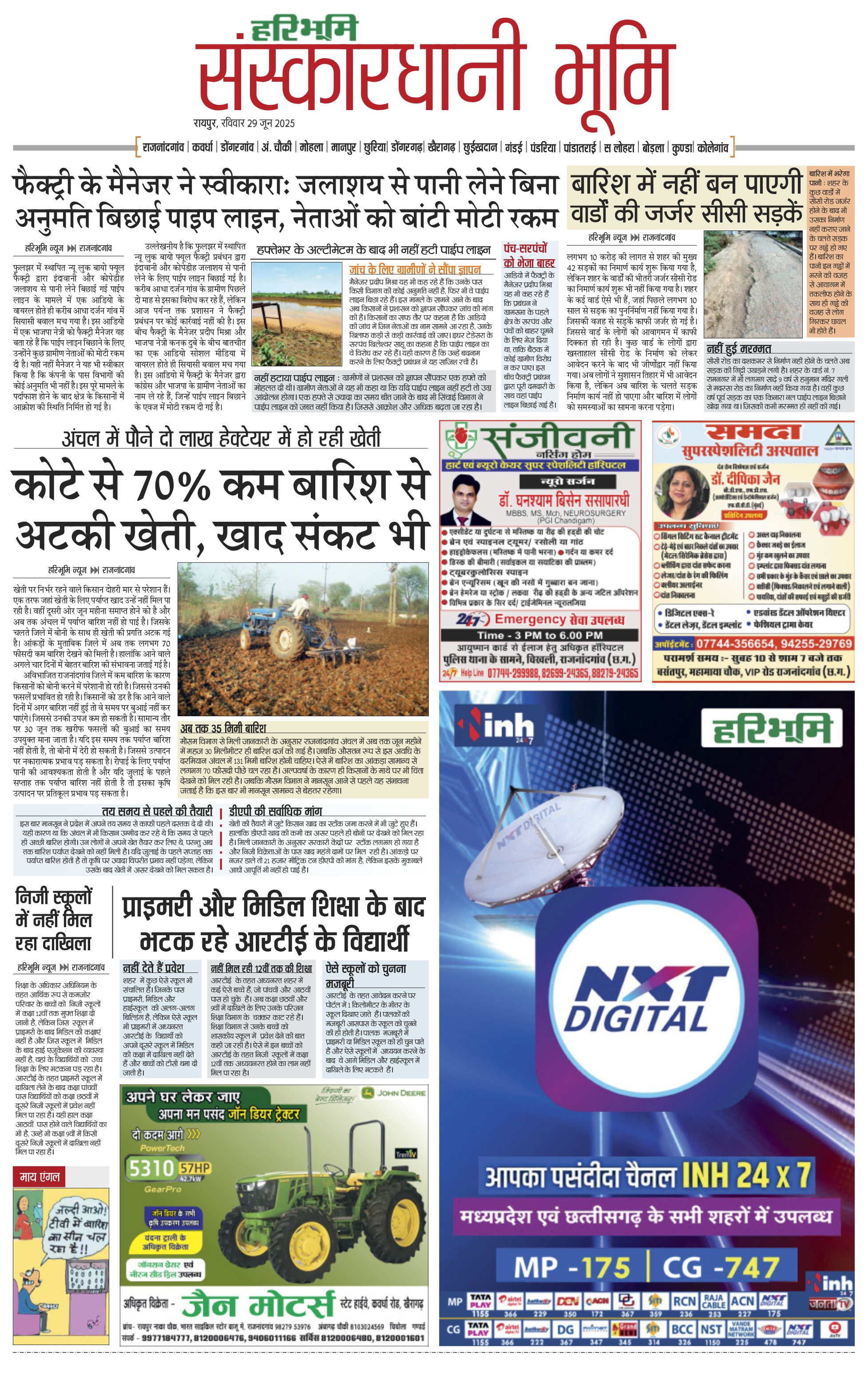 संस्कारधानी भूमि - 29 Jun 2025 - - Page 1
