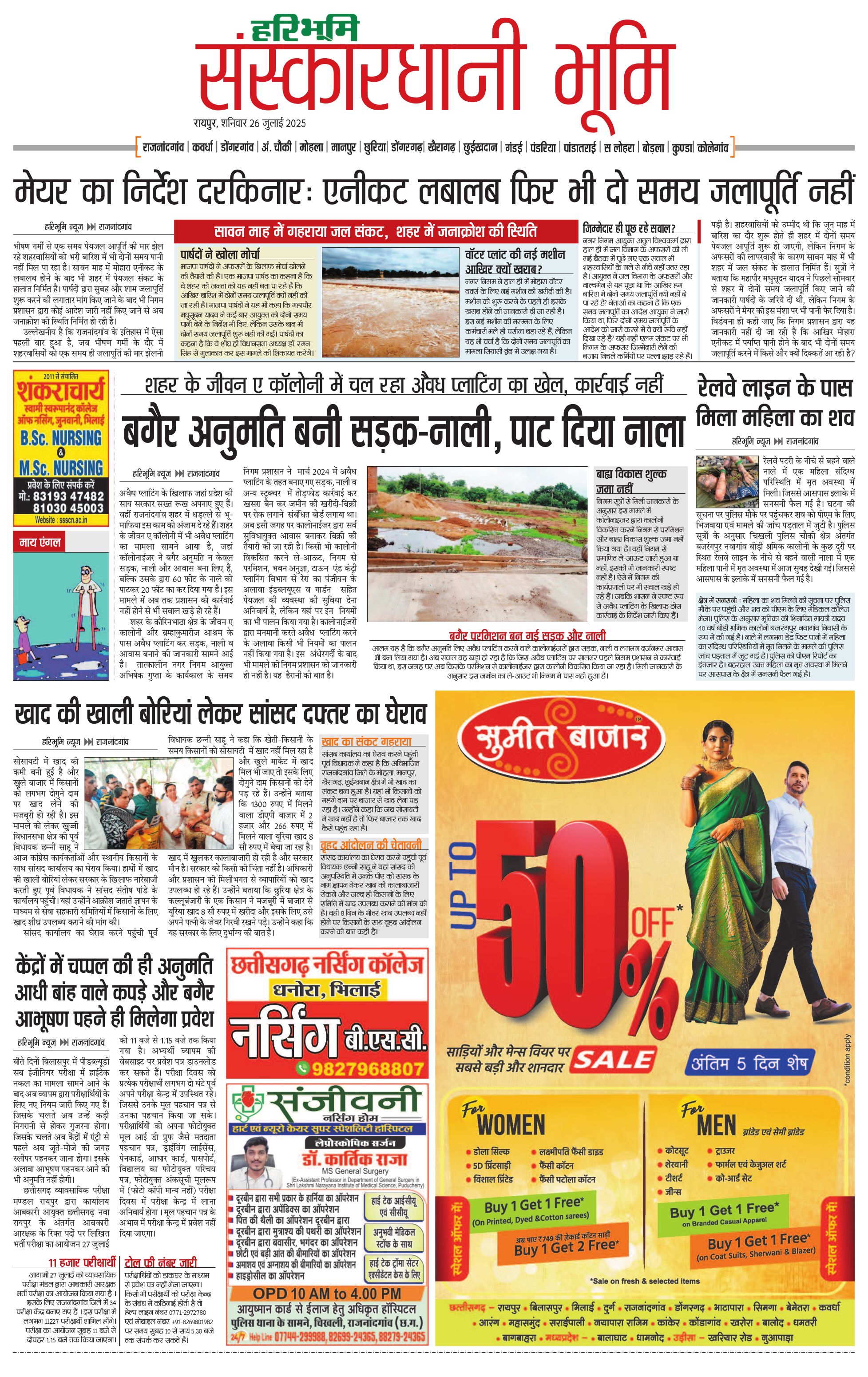 संस्कारधानी भूमि - 26 Jul 2025 - - Page 1