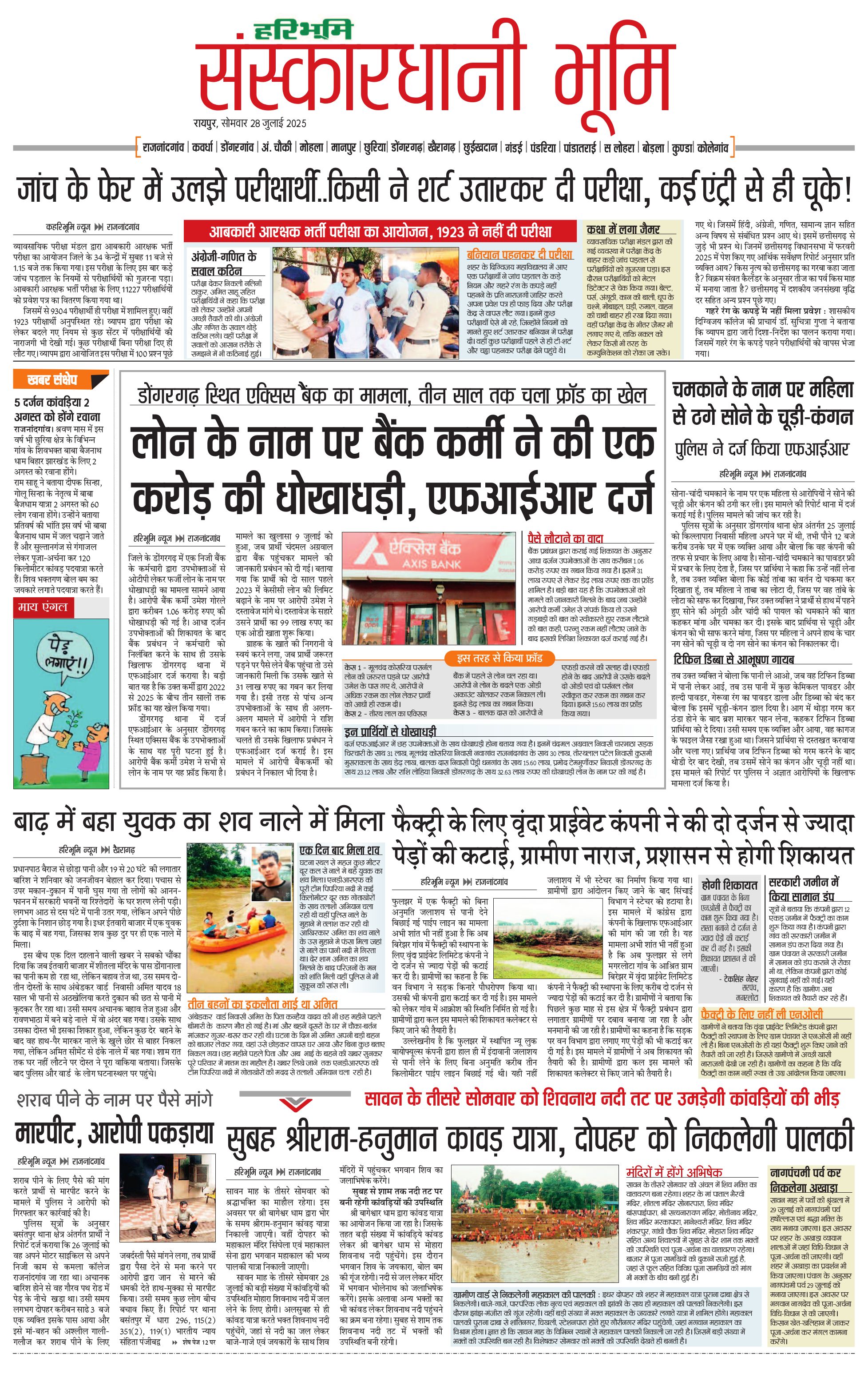 संस्कारधानी भूमि - 28 Jul 2025 - - Page 1