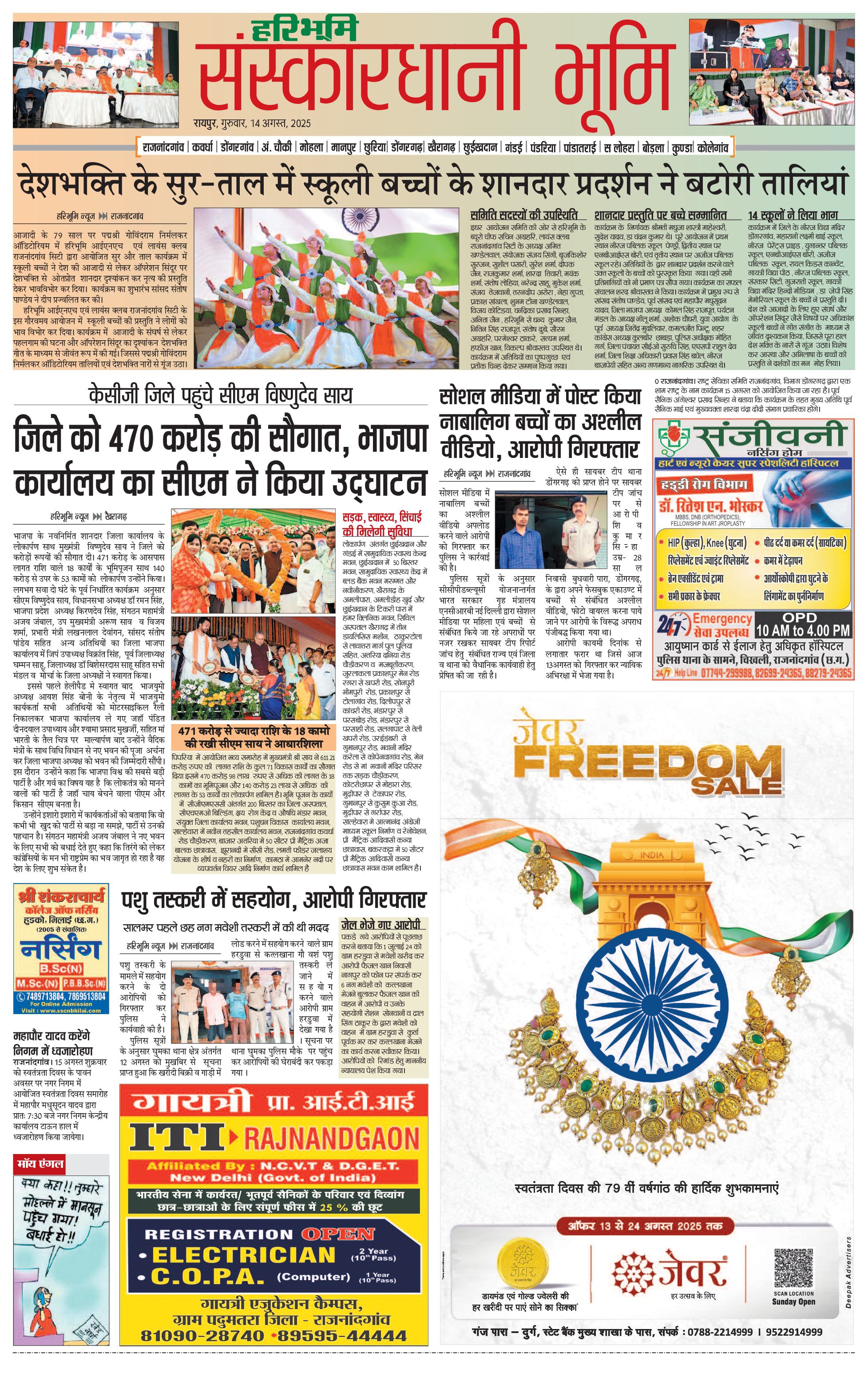 संस्कारधानी भूमि - 14 Aug 2025 - - Page 1