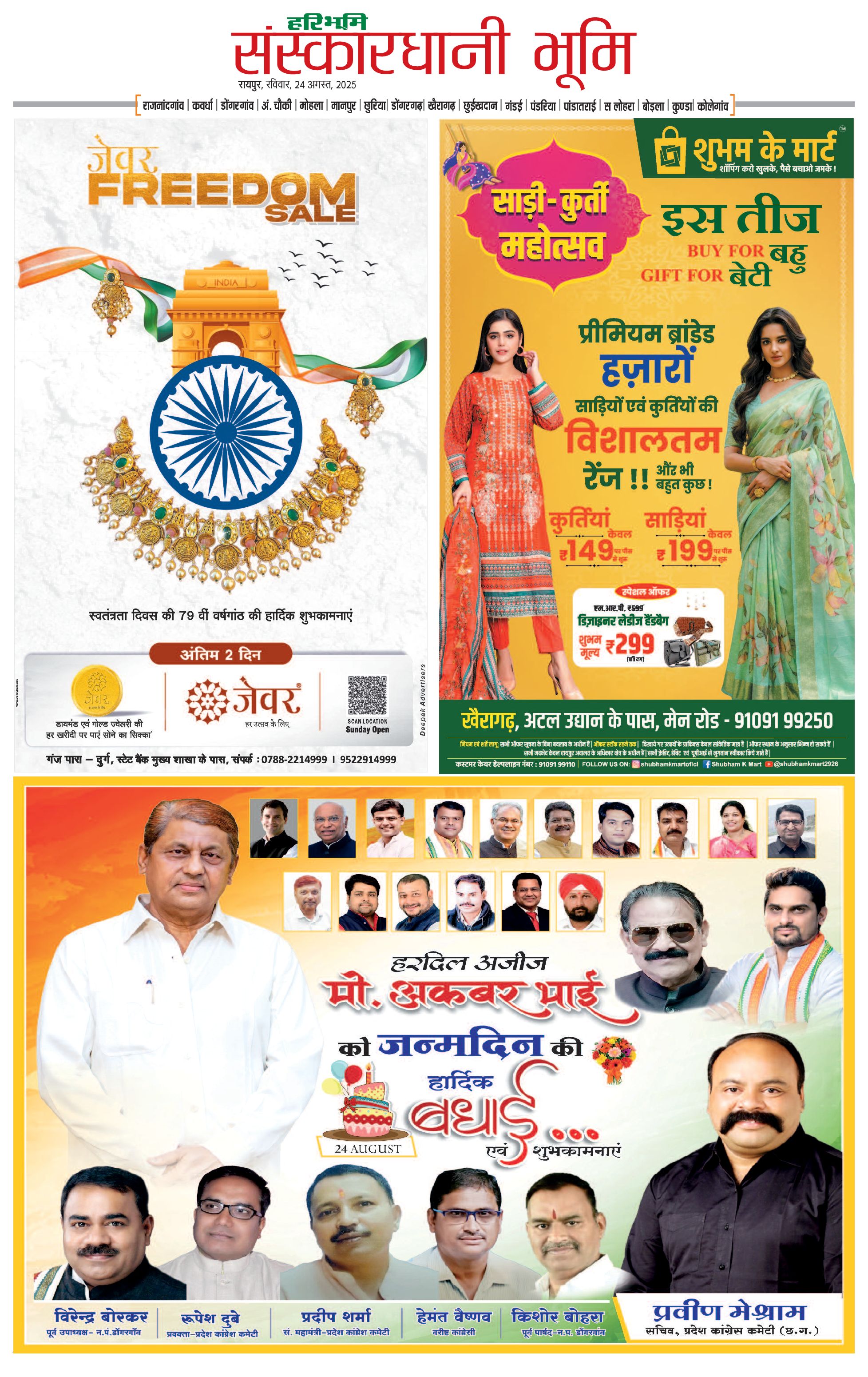 संस्कारधानी भूमि - 24 Aug 2025 - - Page 1