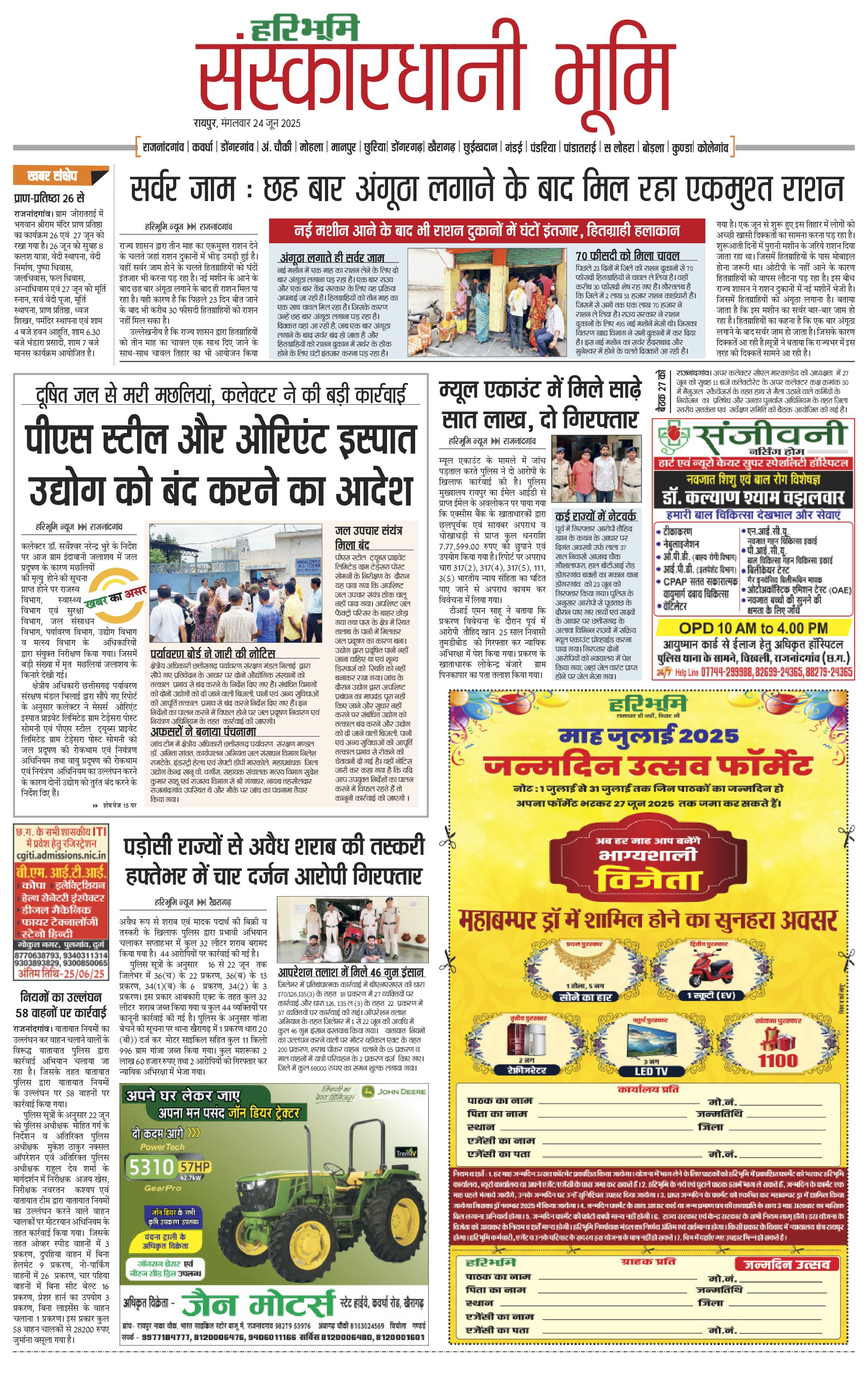 संस्कारधानी भूमि - 24 Jun 2025 - - Page 1