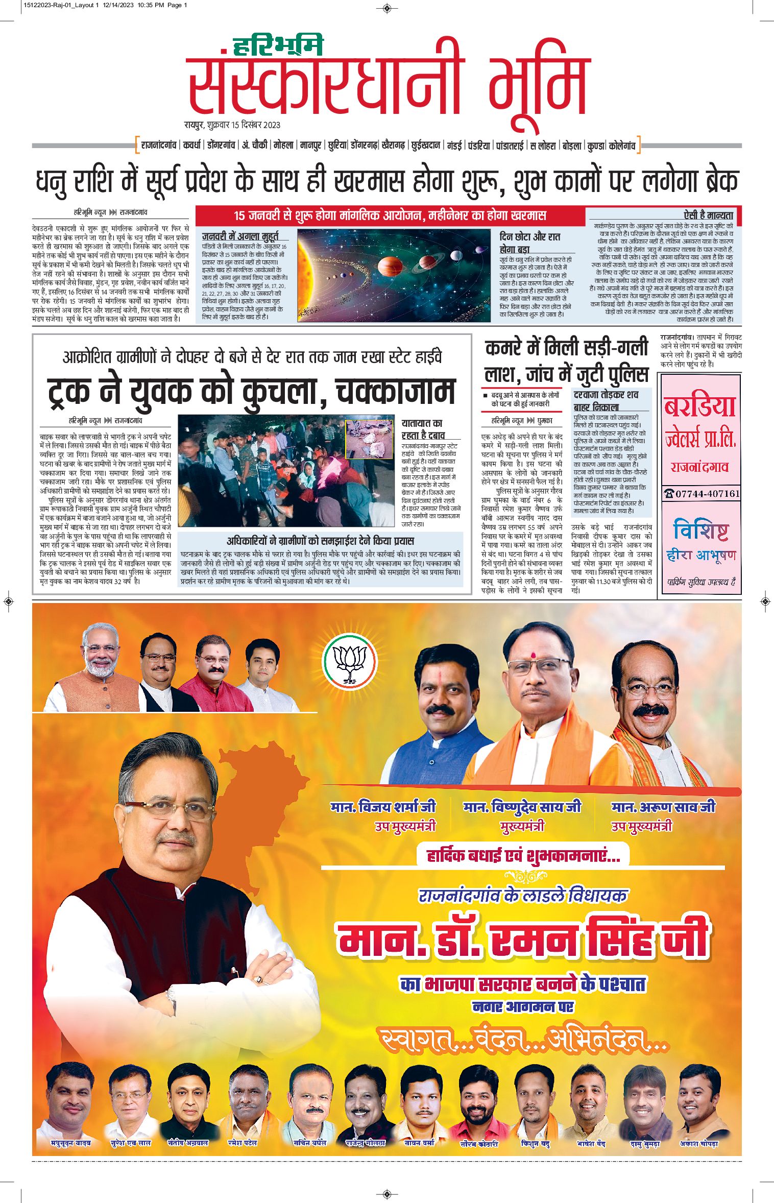 संस्कारधानी भूमि - 15 Dec 2023 - - Page 1