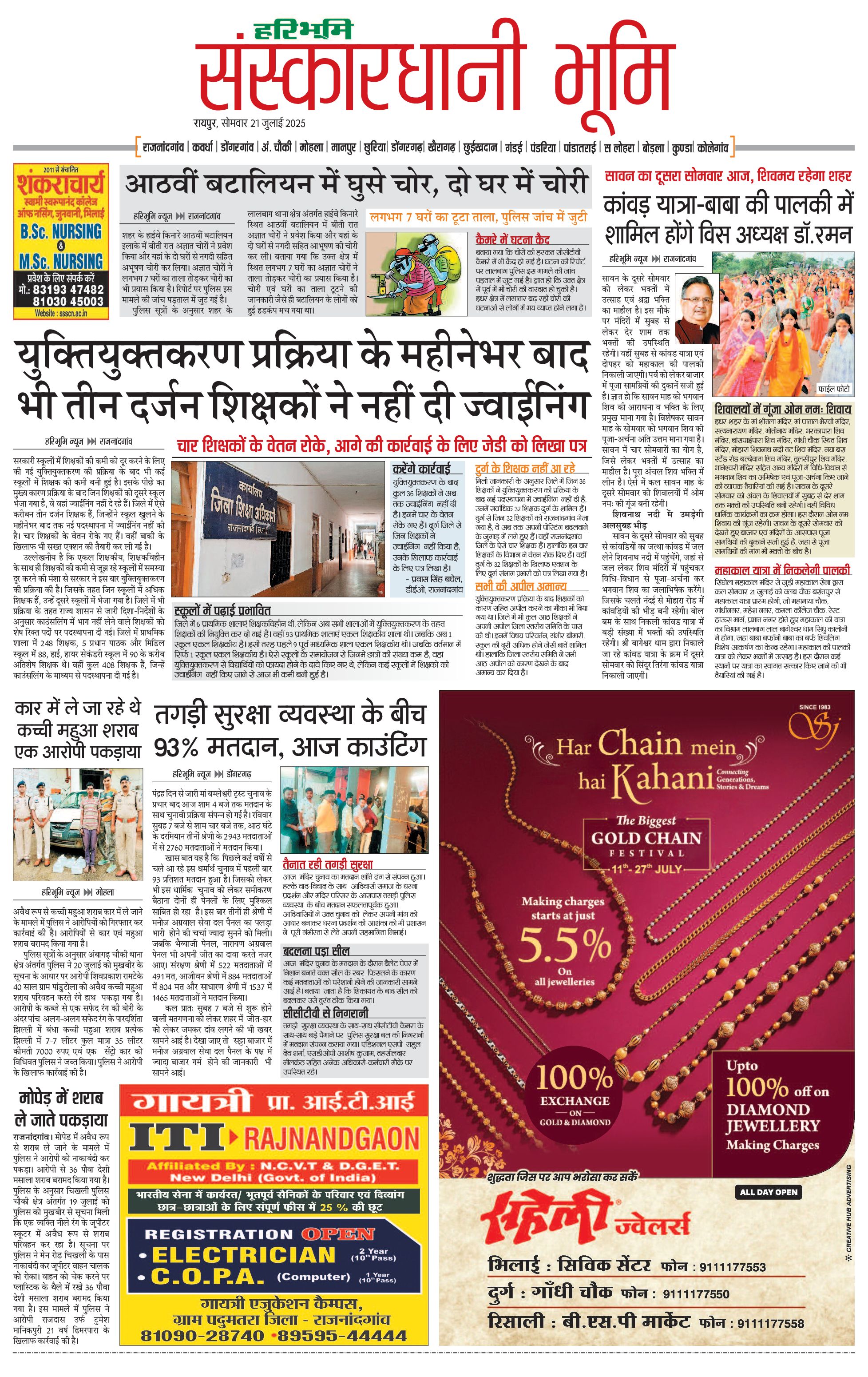संस्कारधानी भूमि - 21 Jul 2025 - - Page 1