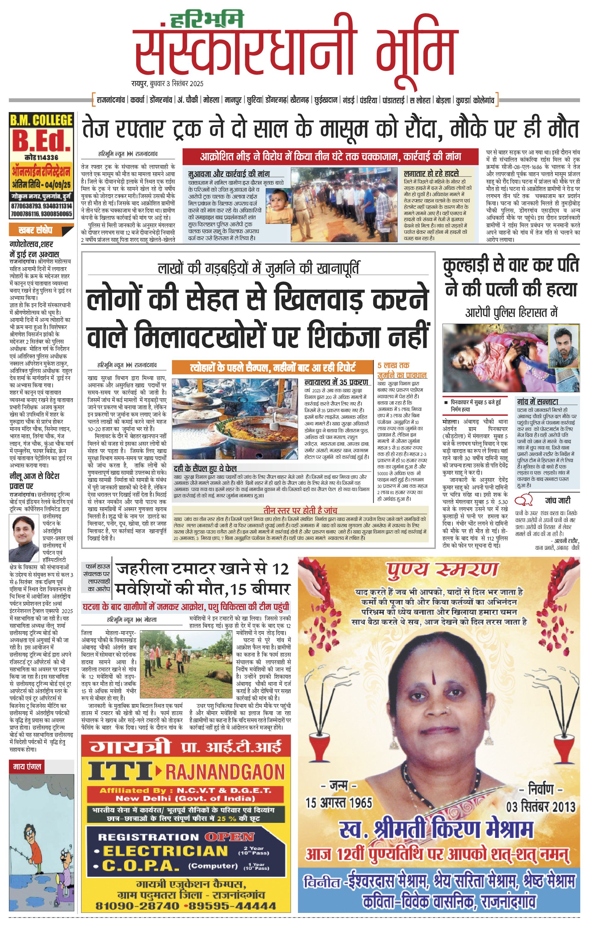 संस्कारधानी भूमि - 03 Sep 2025 - - Page 1