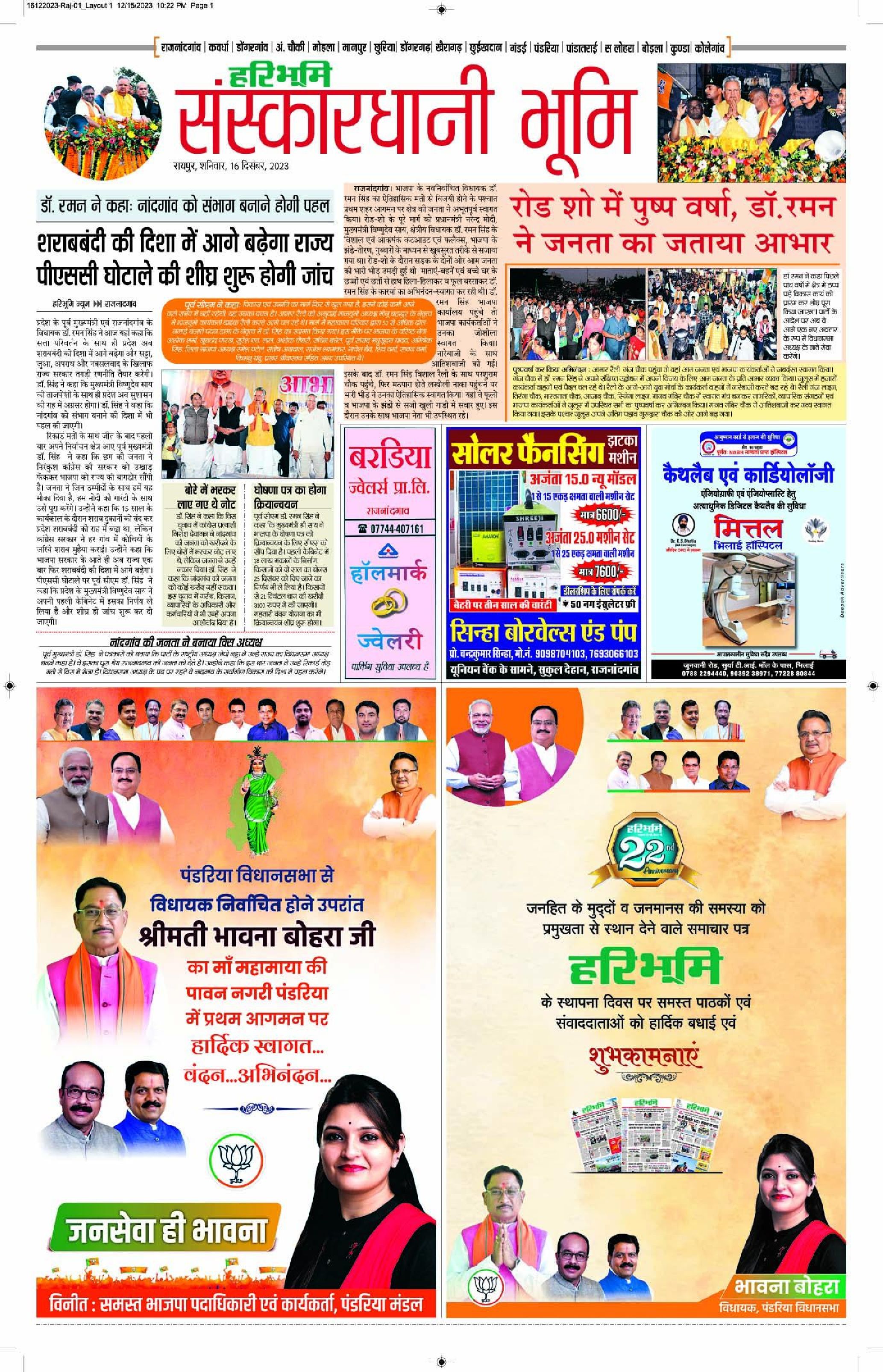 संस्कारधानी भूमि - 16 Dec 2023 - - Page 1