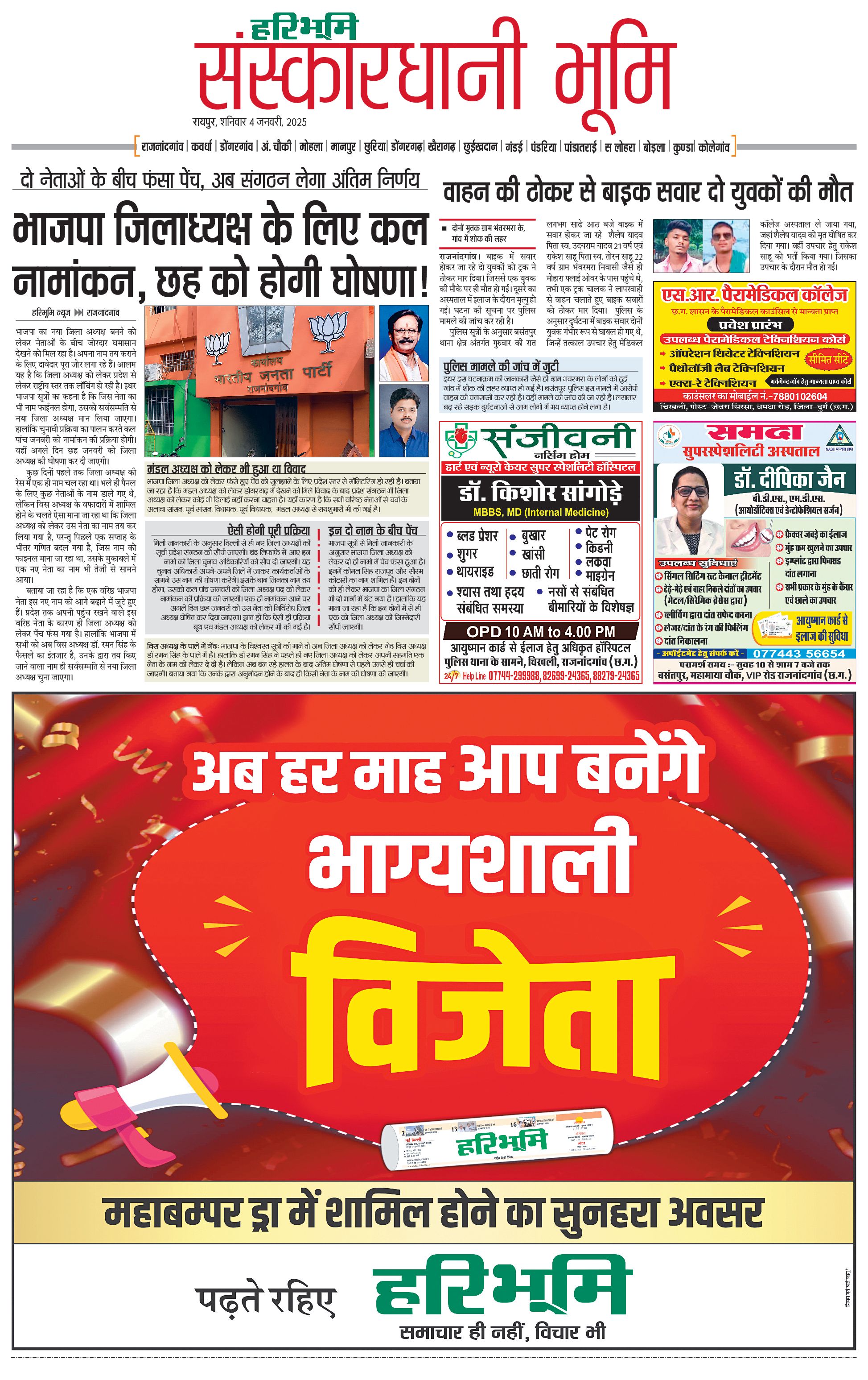 संस्कारधानी भूमि - 04 Jan 2025 - - Page 1