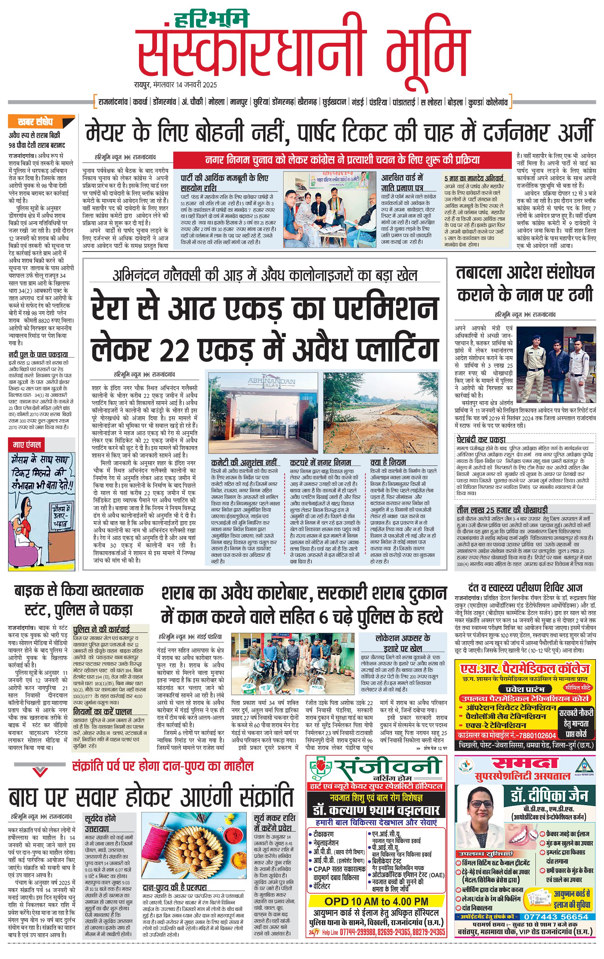 संस्कारधानी भूमि - 14 Jan 2025 - - Page 1