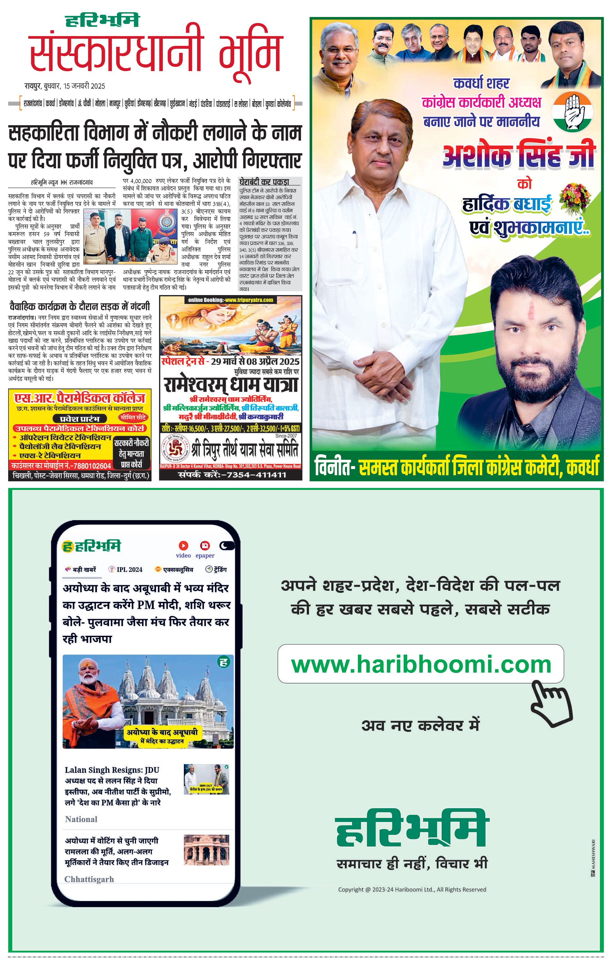 संस्कारधानी भूमि - 15 Jan 2025 - - Page 1