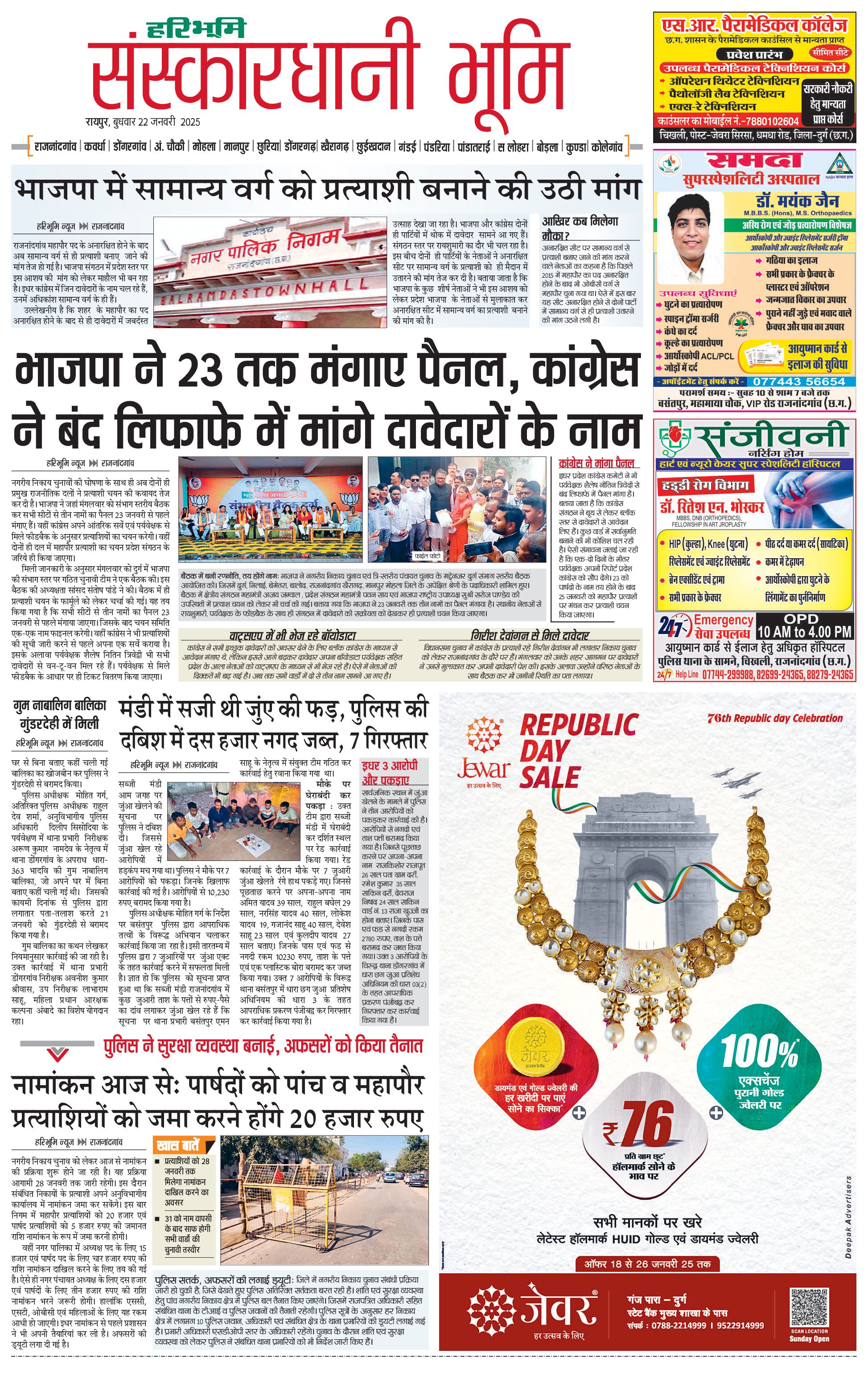 संस्कारधानी भूमि - 22 Jan 2025 - - Page 1