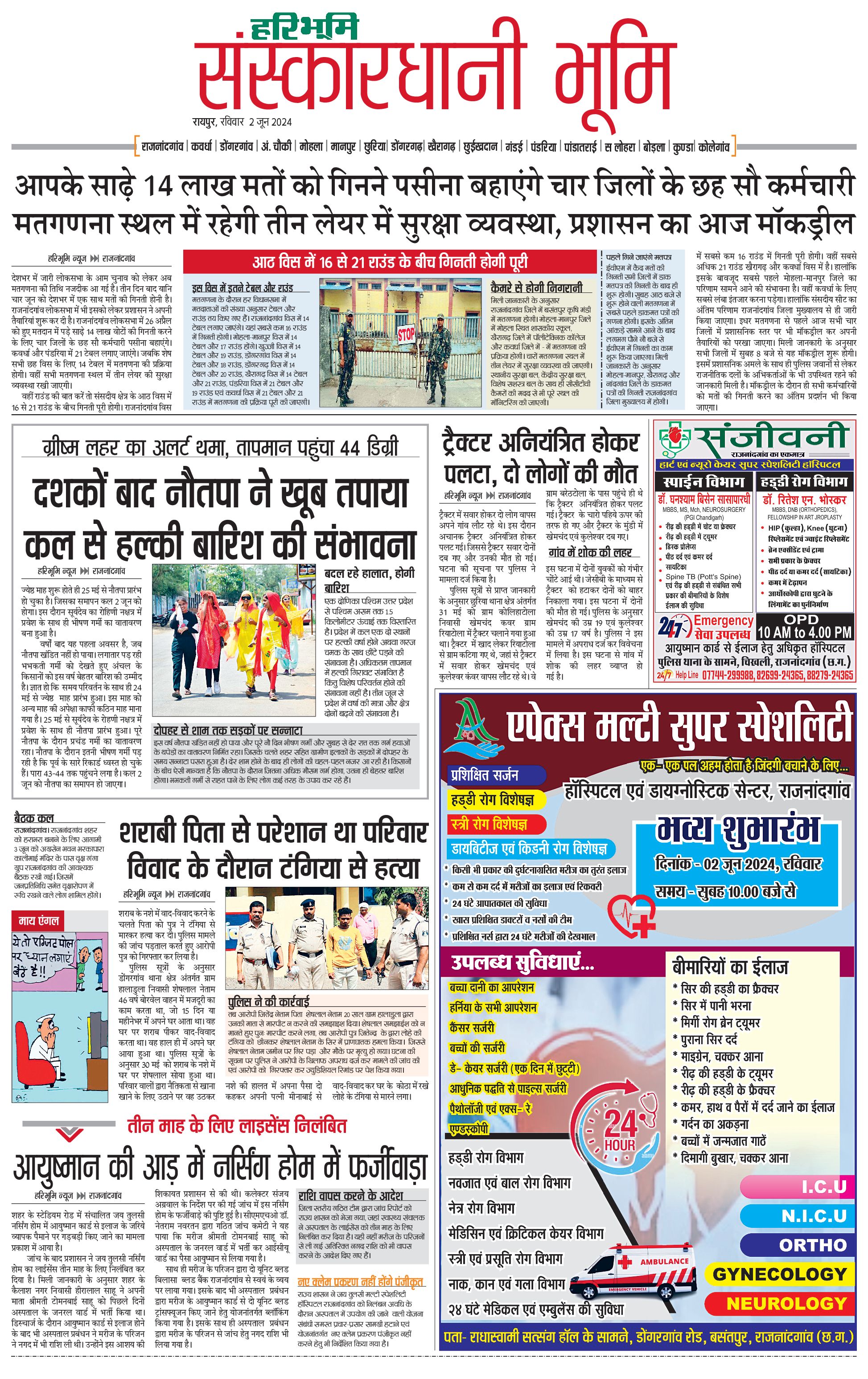 संस्कारधानी भूमि - 02 Jun 2024 - - Page 1