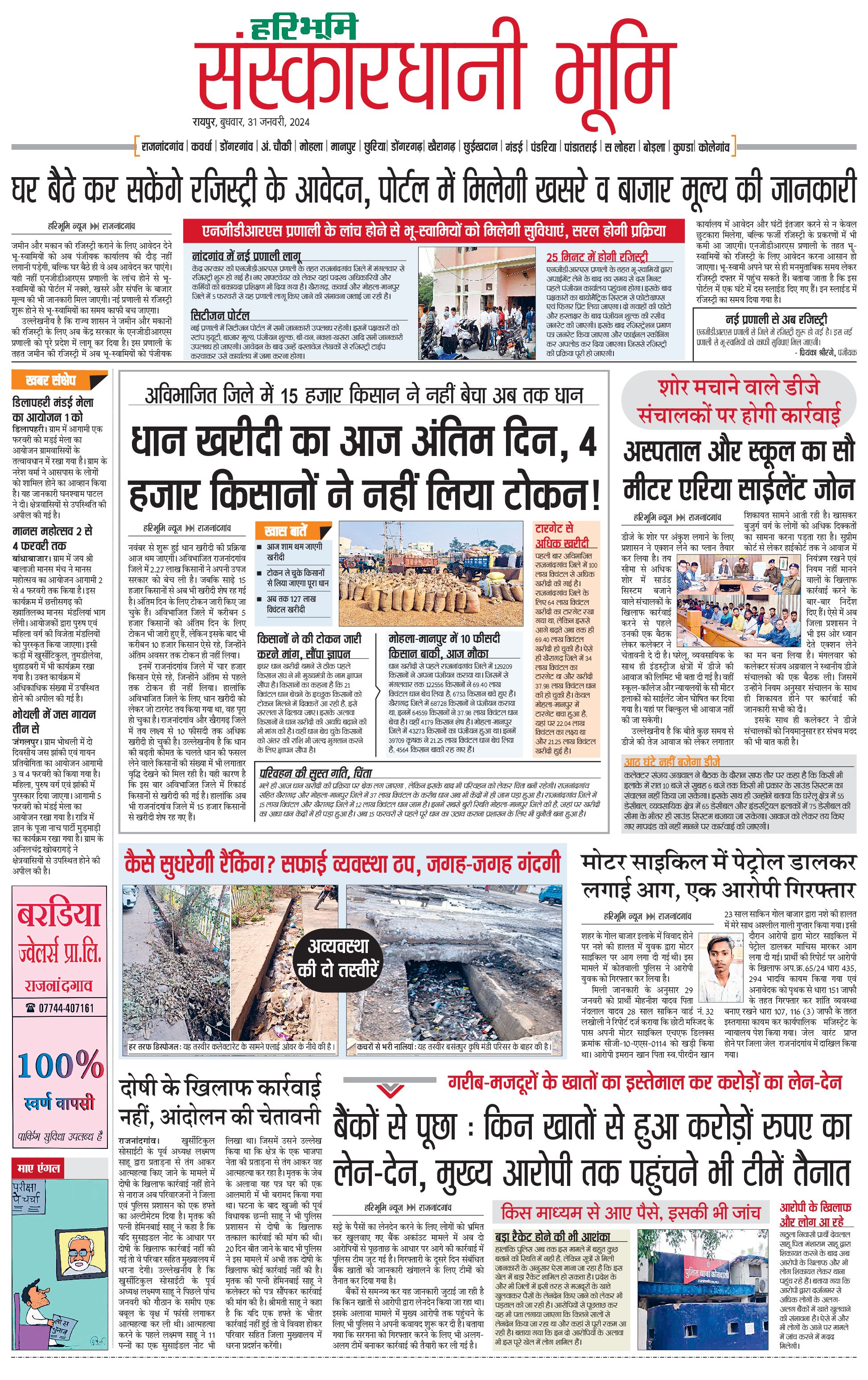 संस्कारधानी भूमि - 31 Jan 2024 - - Page 1