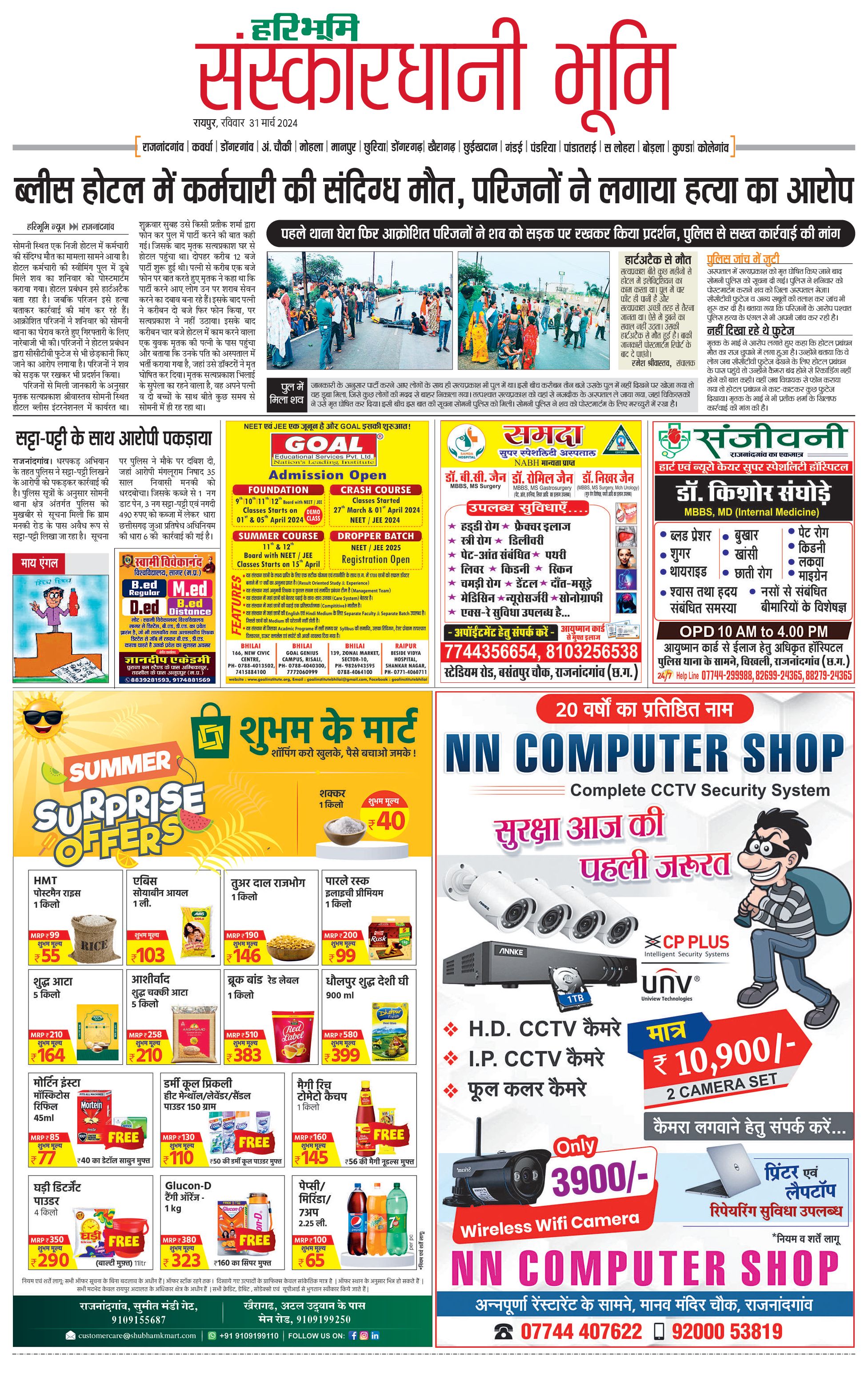 संस्कारधानी भूमि - 31 Mar 2024 - - Page 1