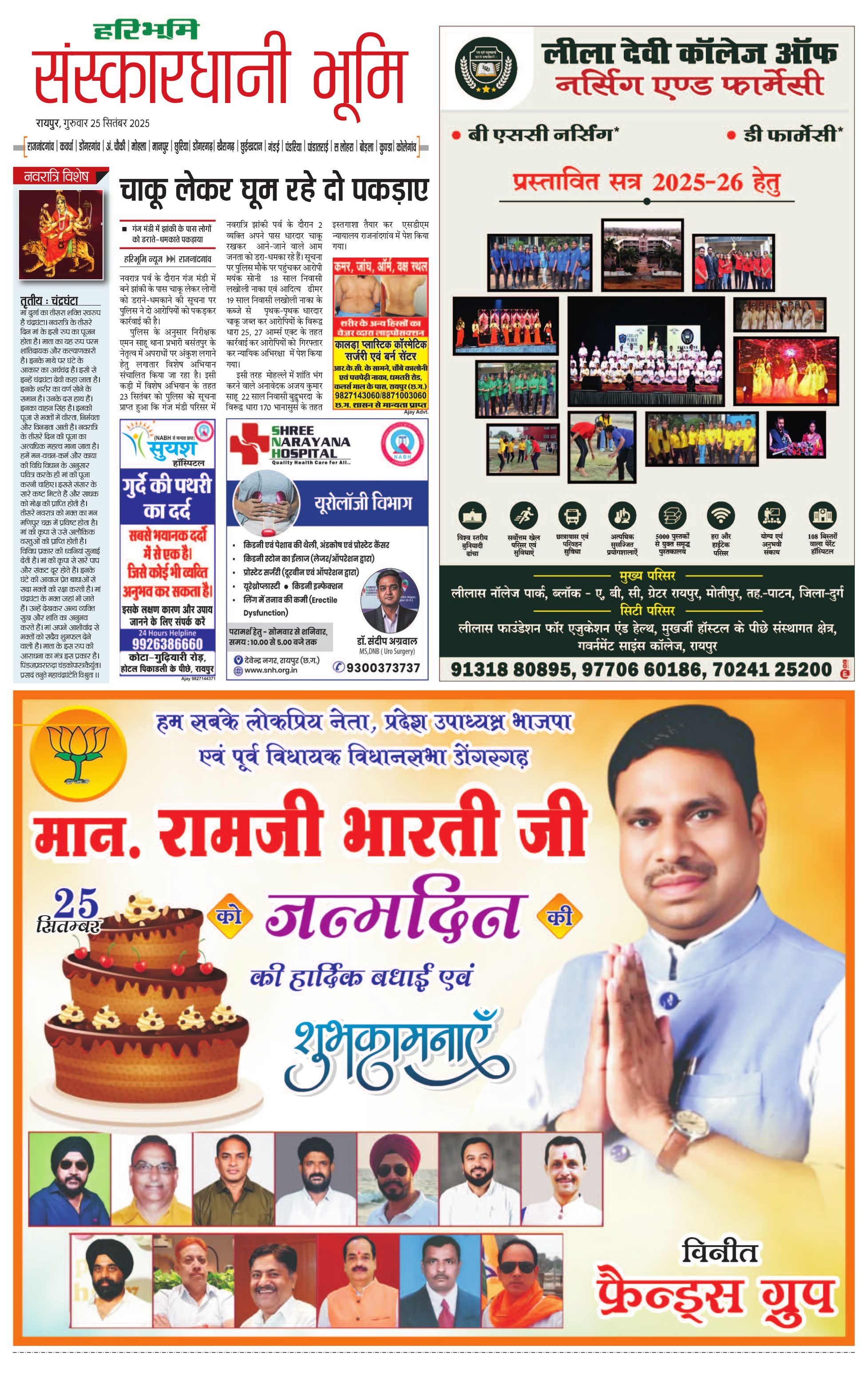 संस्कारधानी भूमि - 25 Sep 2025 - - Page 1