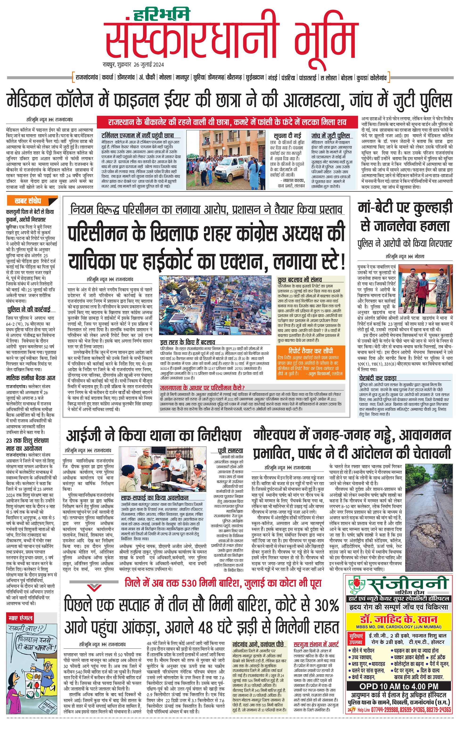 संस्कारधानी भूमि - 26 Jul 2024 - - Page 1
