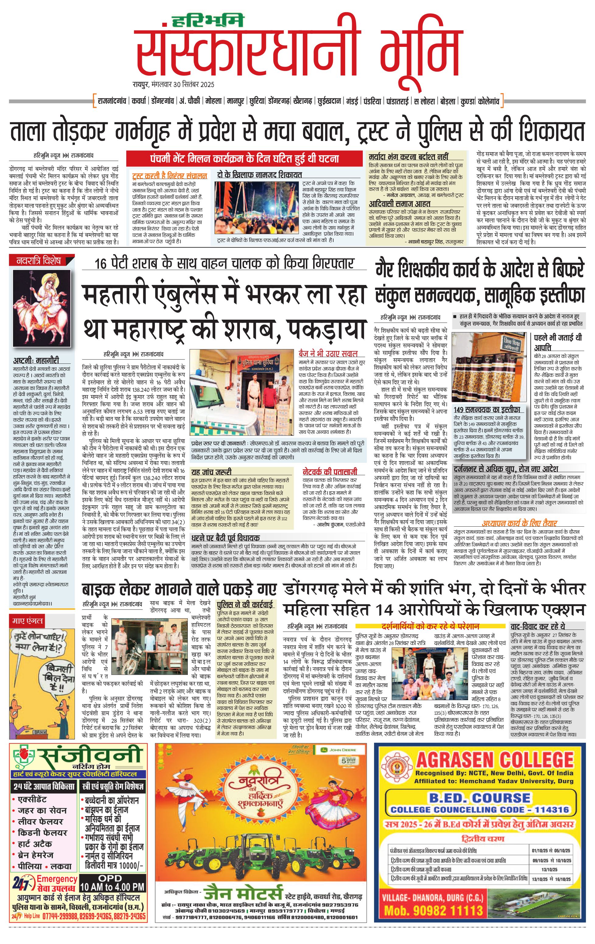 संस्कारधानी भूमि - 30 Sep 2025 - - Page 1