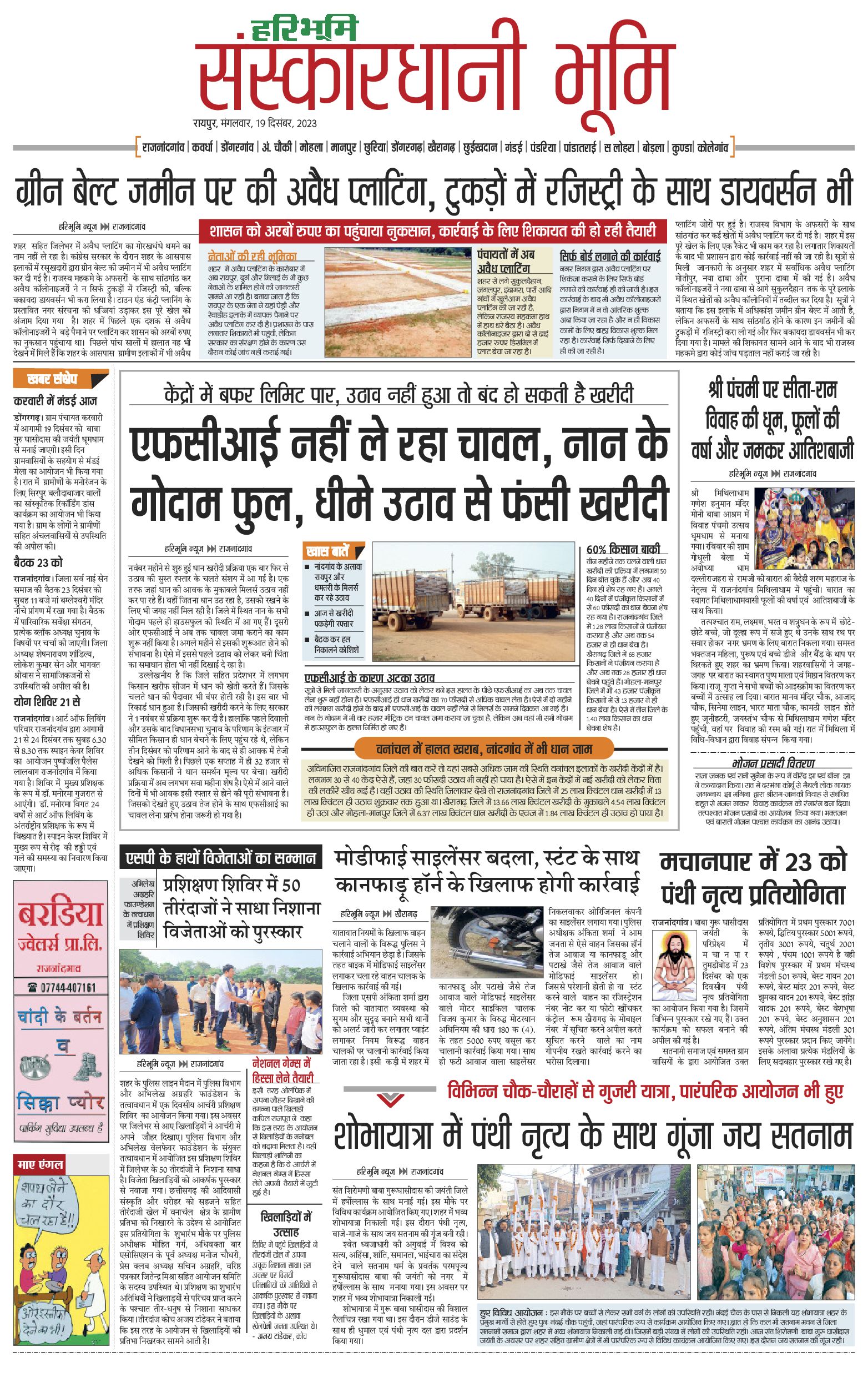 संस्कारधानी भूमि - 19 Dec 2023 - - Page 1
