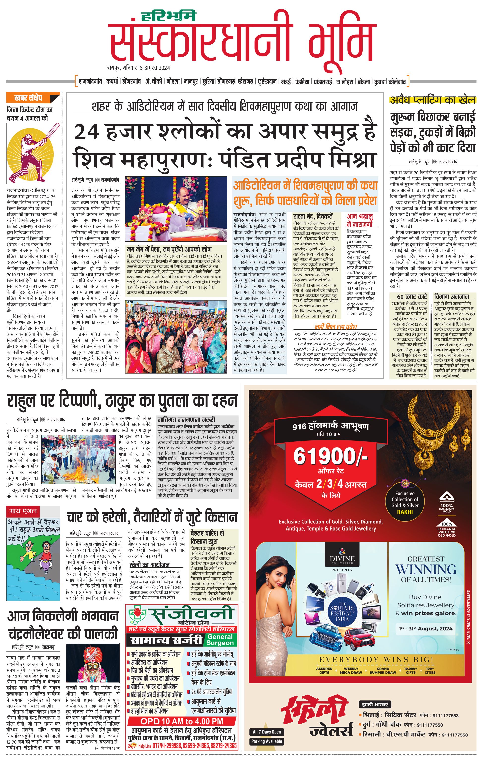 संस्कारधानी भूमि - 03 Aug 2024 - - Page 1