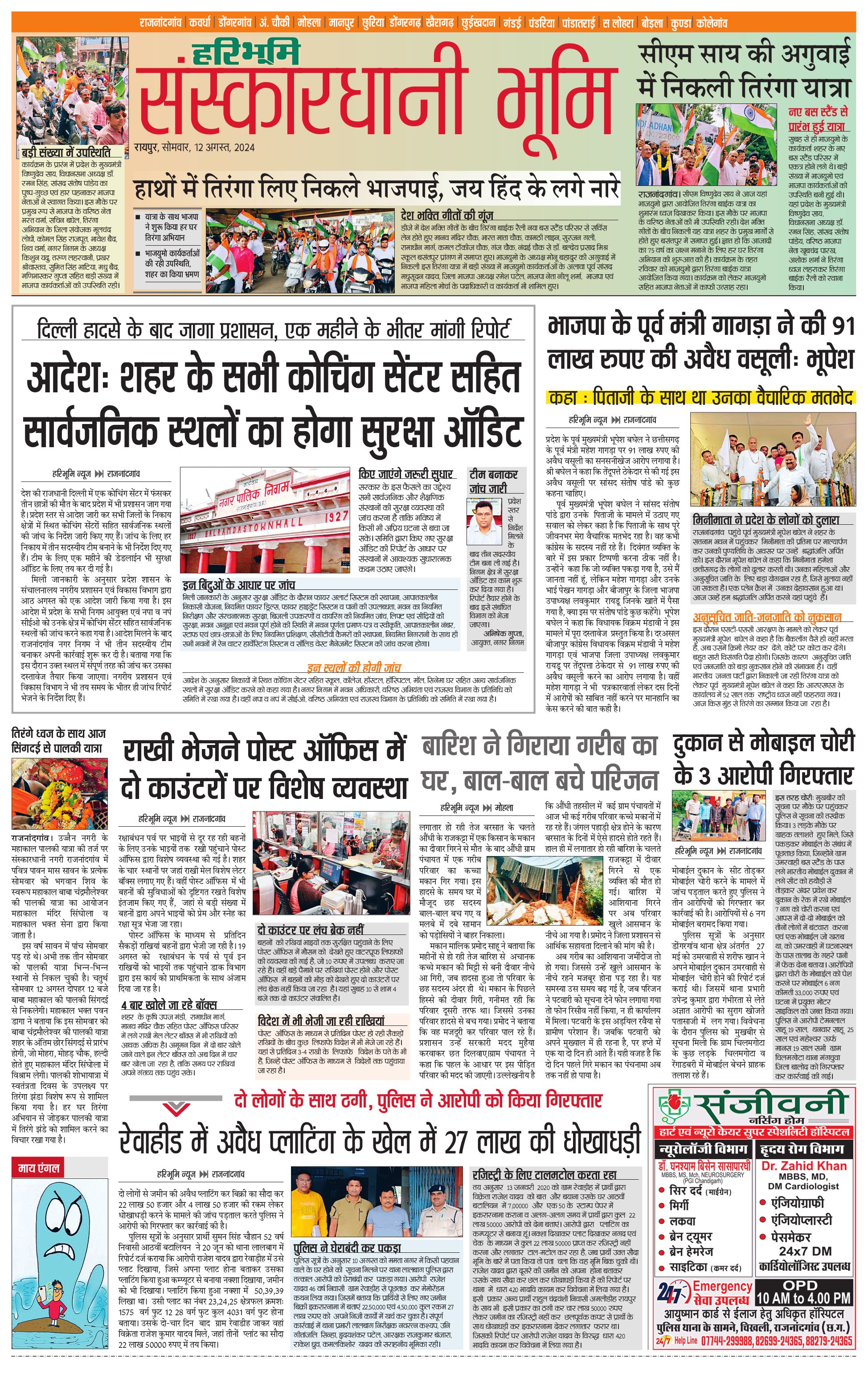 संस्कारधानी भूमि - 12 Aug 2024 - - Page 1