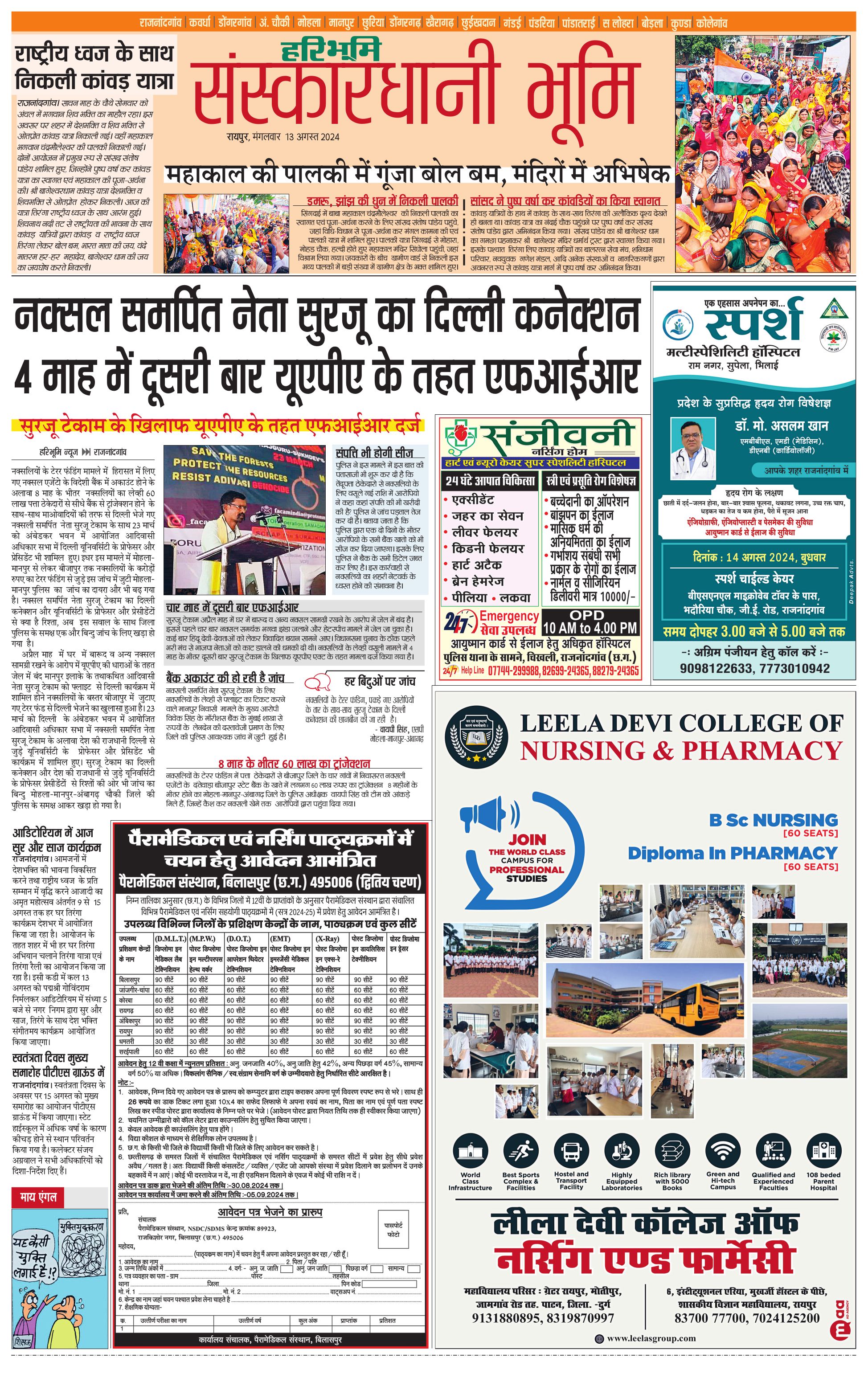संस्कारधानी भूमि - 13 Aug 2024 - - Page 1