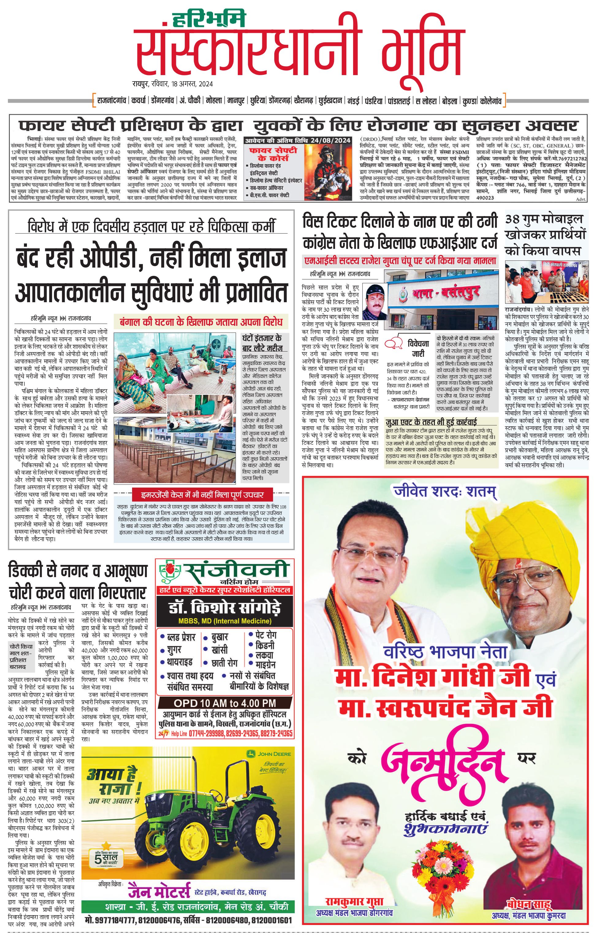 संस्कारधानी भूमि - 18 Aug 2024 - - Page 1