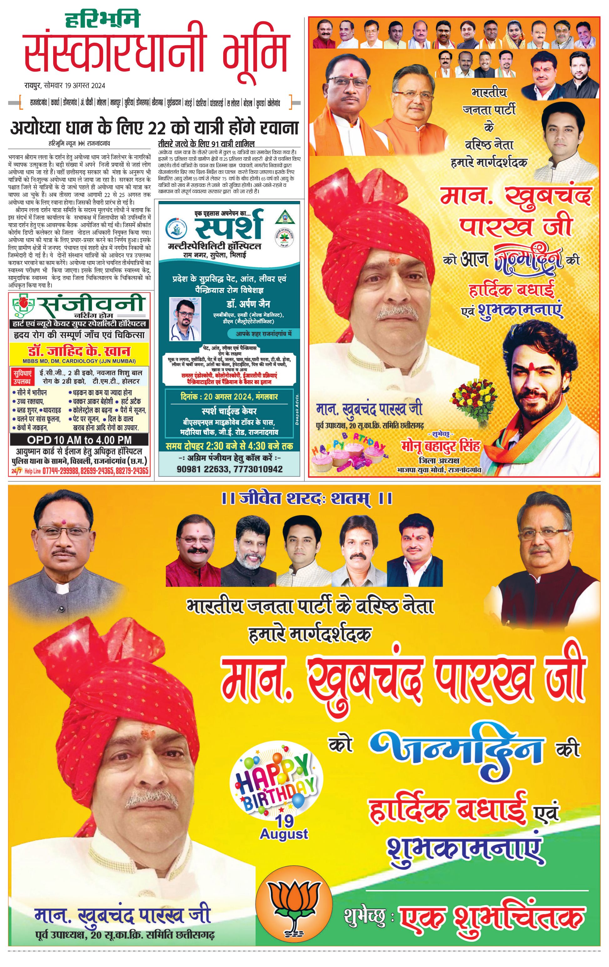 संस्कारधानी भूमि - 19 Aug 2024 - - Page 1