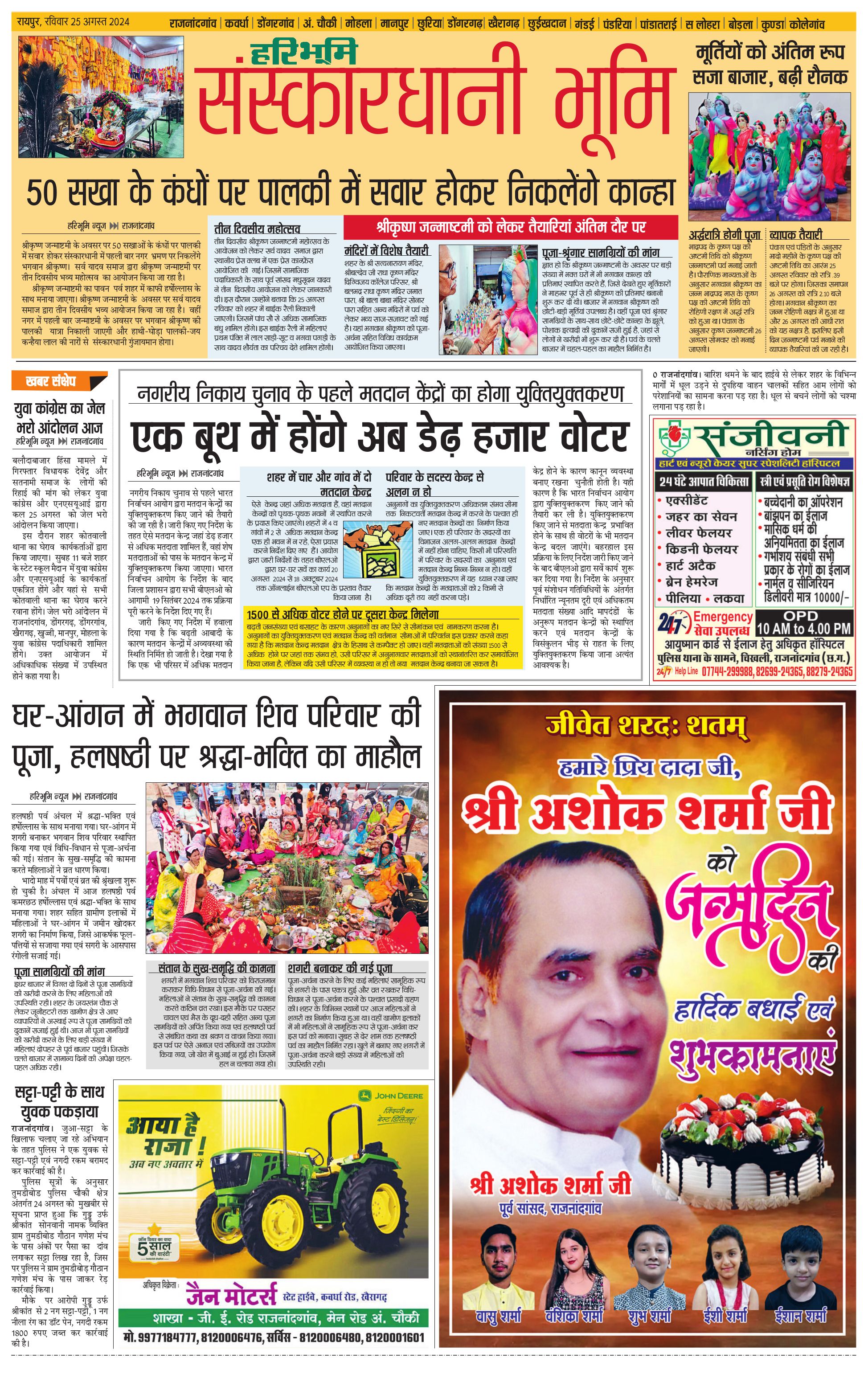 संस्कारधानी भूमि - 25 Aug 2024 - - Page 1