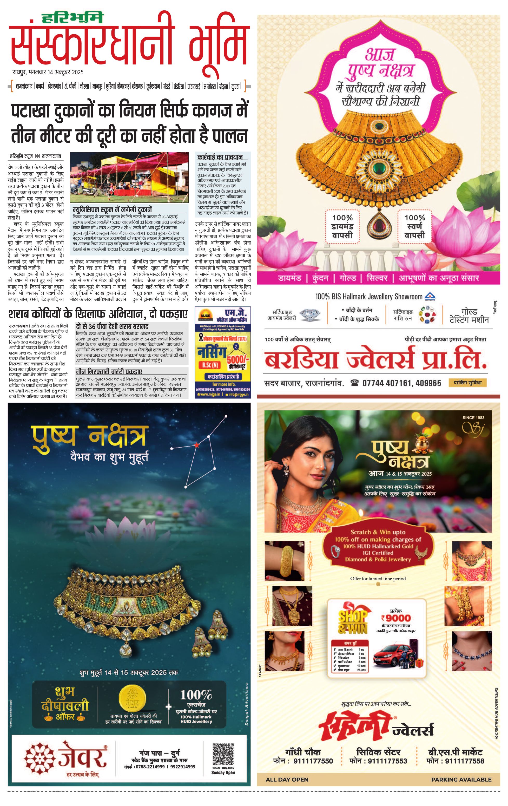 संस्कारधानी भूमि - 14 Oct 2025 - - Page 1