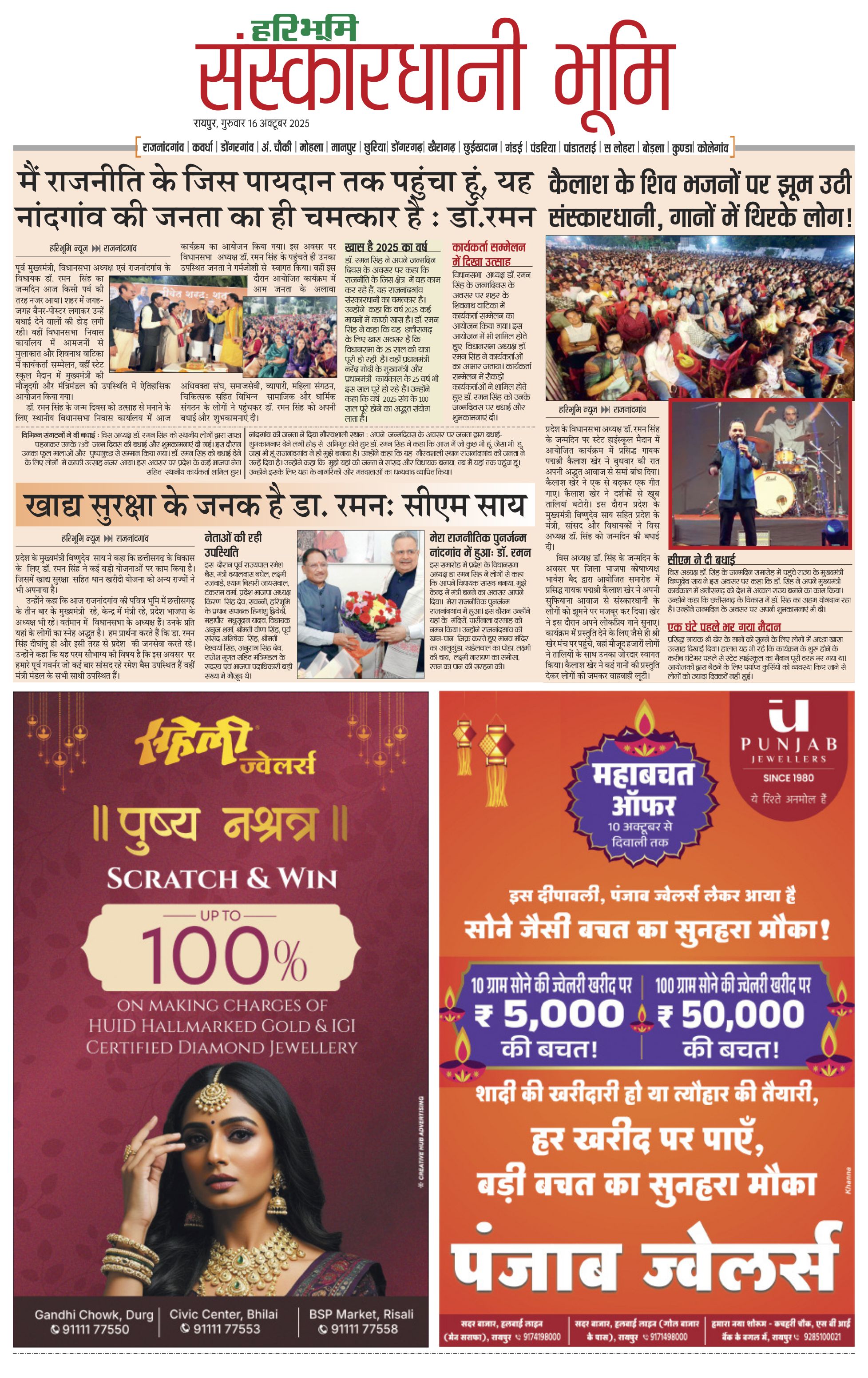 संस्कारधानी भूमि - 16 Oct 2025 - - Page 1
