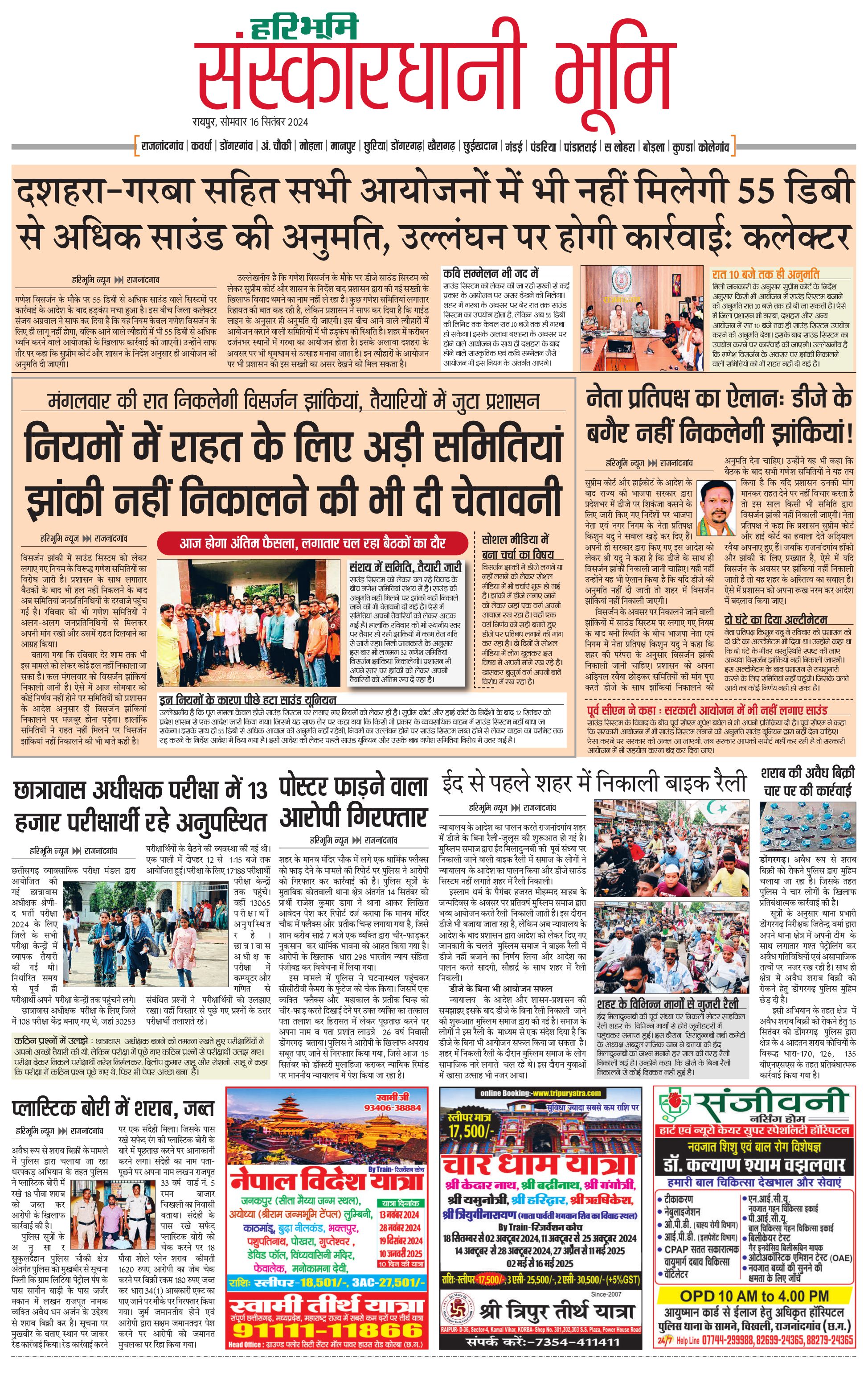 संस्कारधानी भूमि - 16 Sep 2024 - - Page 1