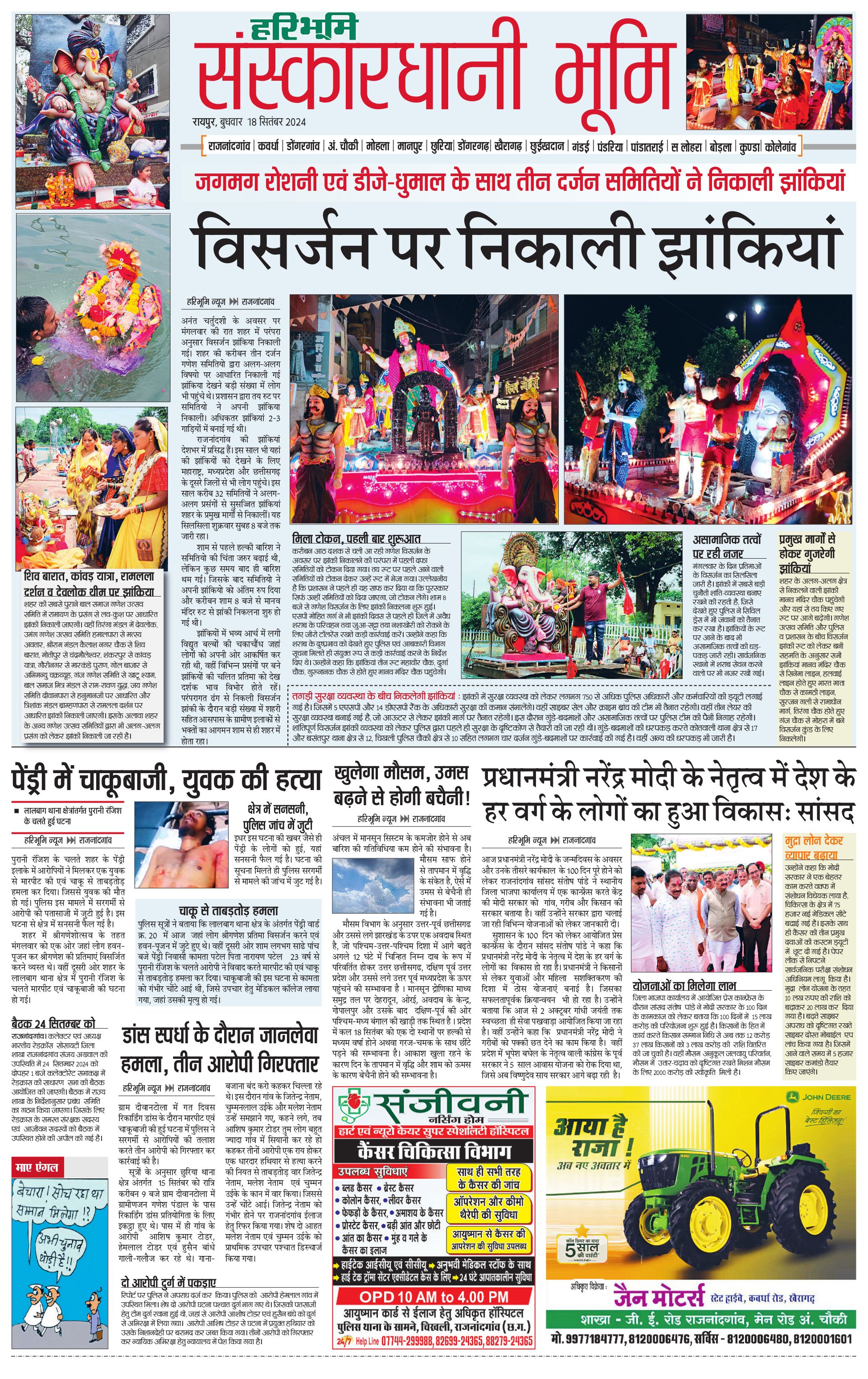 संस्कारधानी भूमि - 18 Sep 2024 - - Page 1