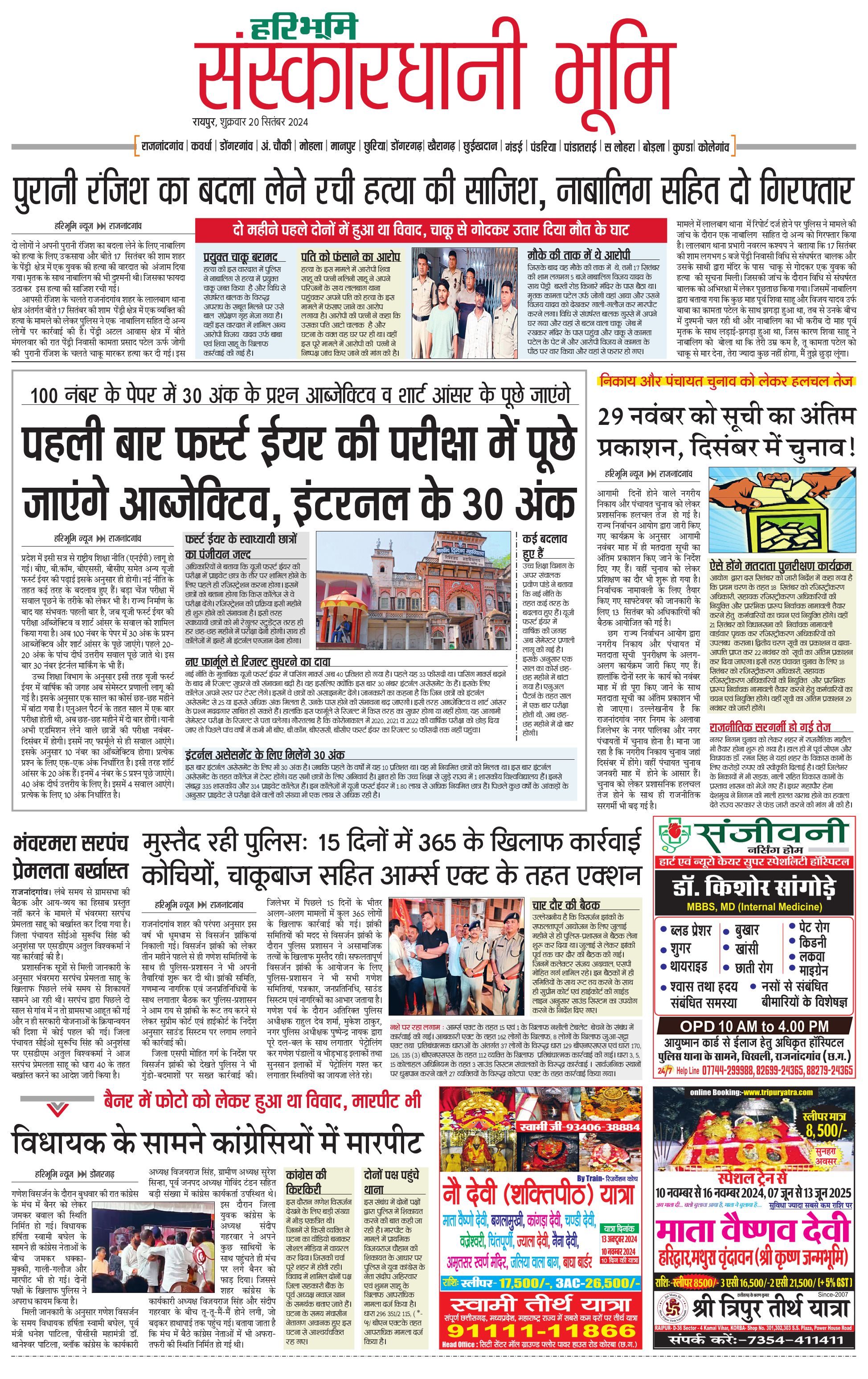 संस्कारधानी भूमि - 20 Sep 2024 - - Page 1