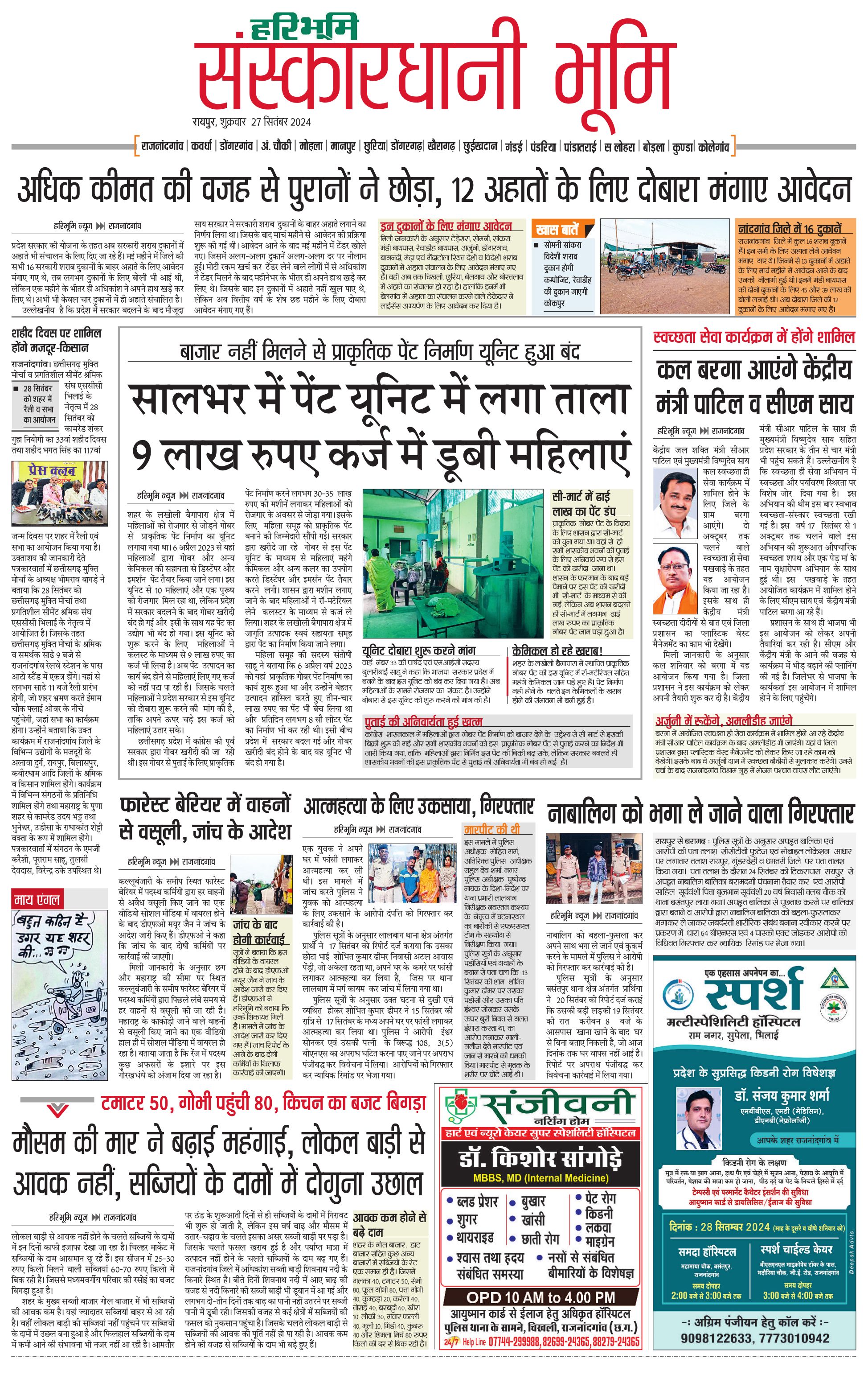 संस्कारधानी भूमि - 27 Sep 2024 - - Page 1