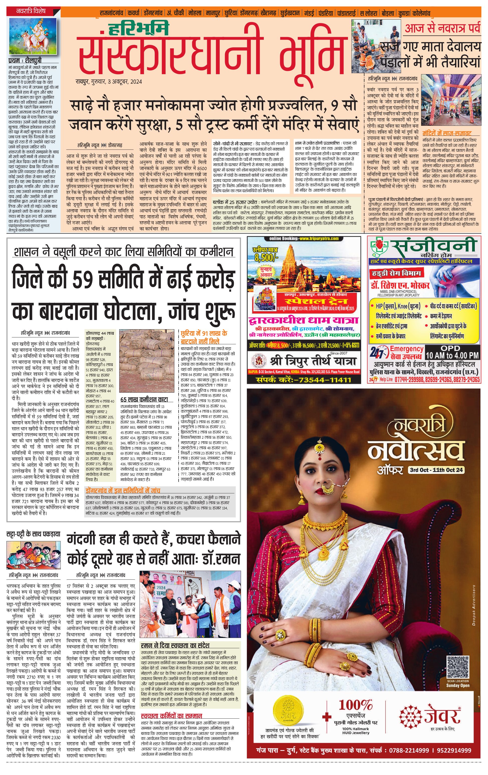 संस्कारधानी भूमि - 03 Oct 2024 - - Page 1