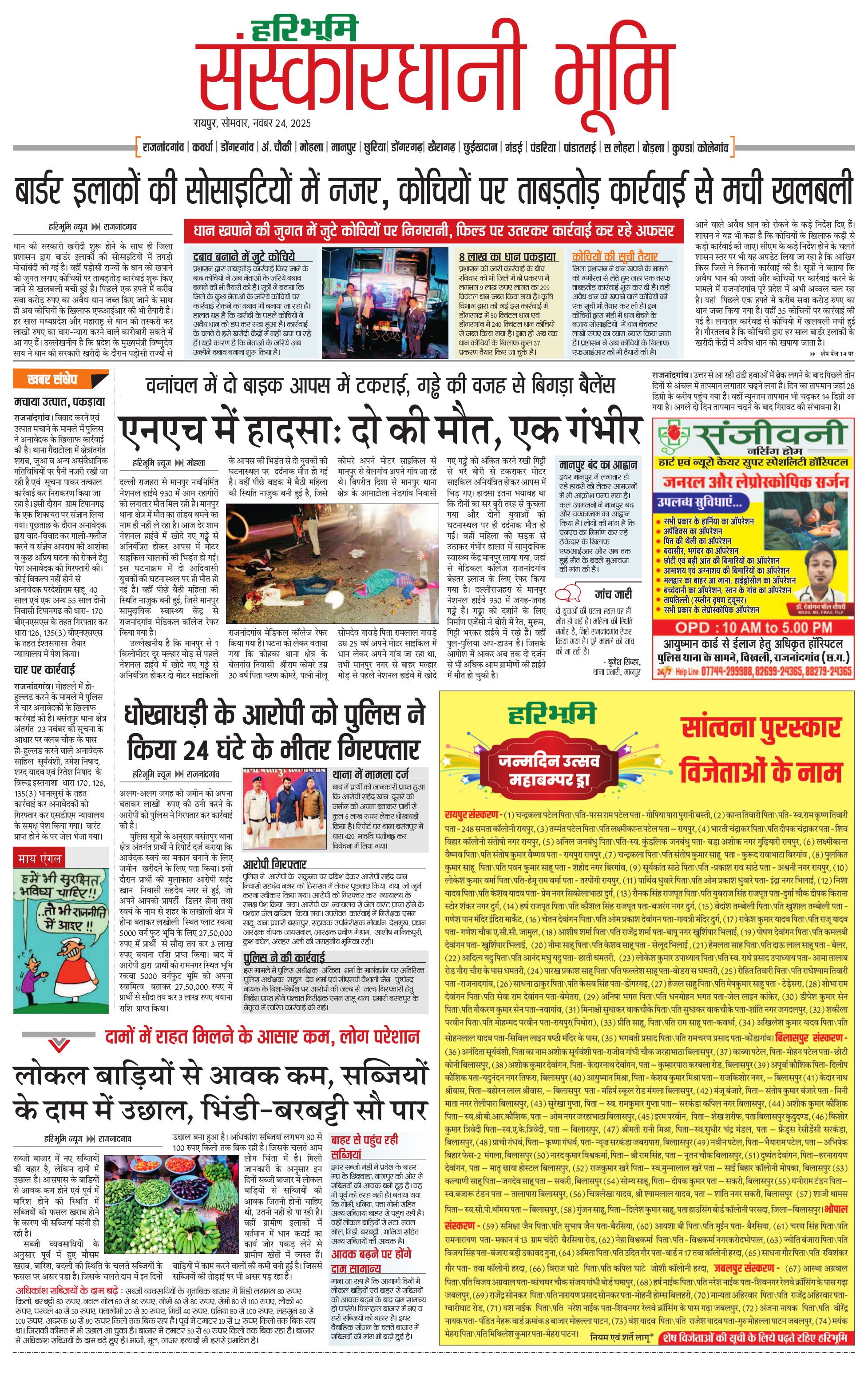 संस्कारधानी भूमि - 24 Nov 2025 - - Page 1