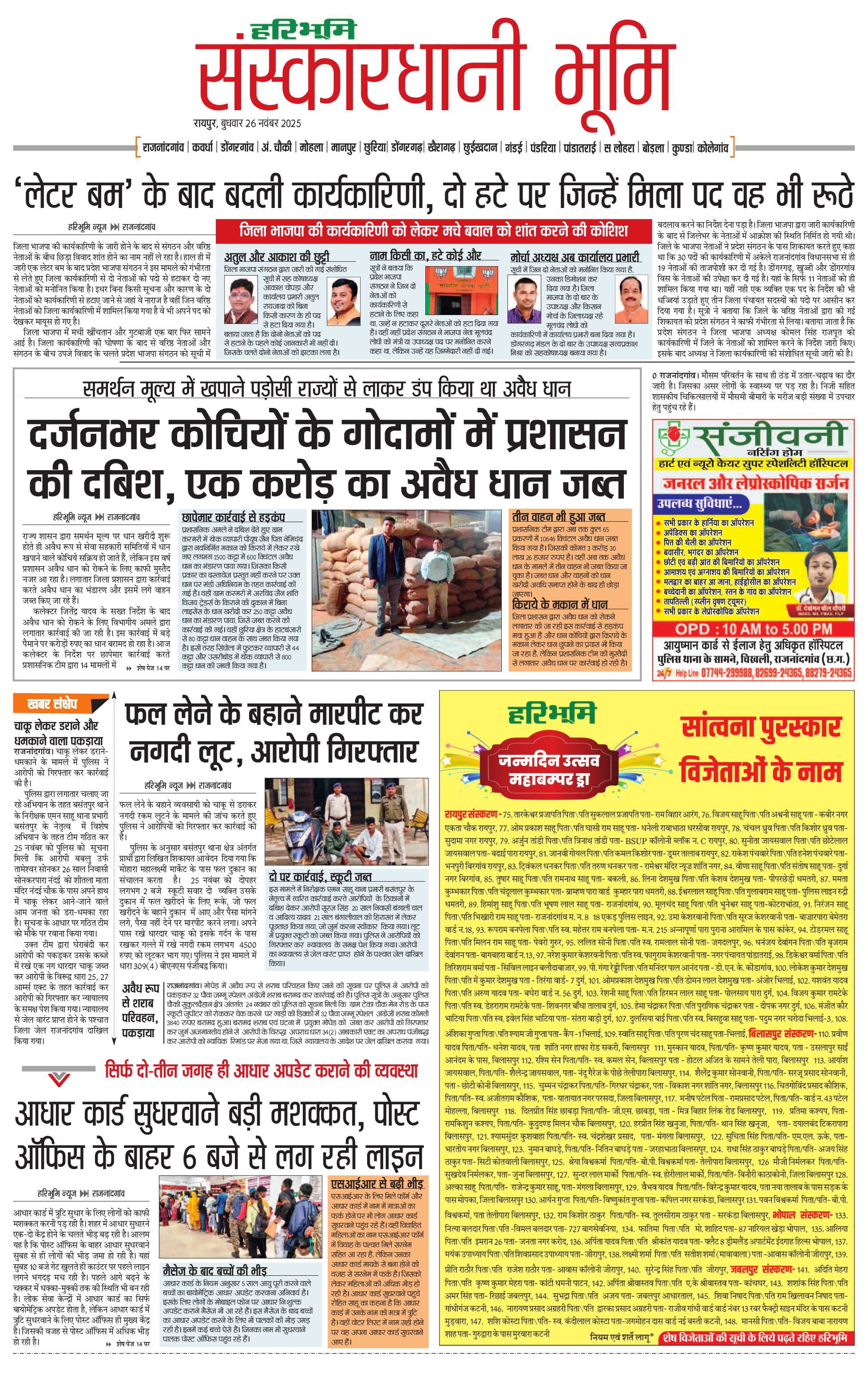 संस्कारधानी भूमि - 26 Nov 2025 - - Page 1