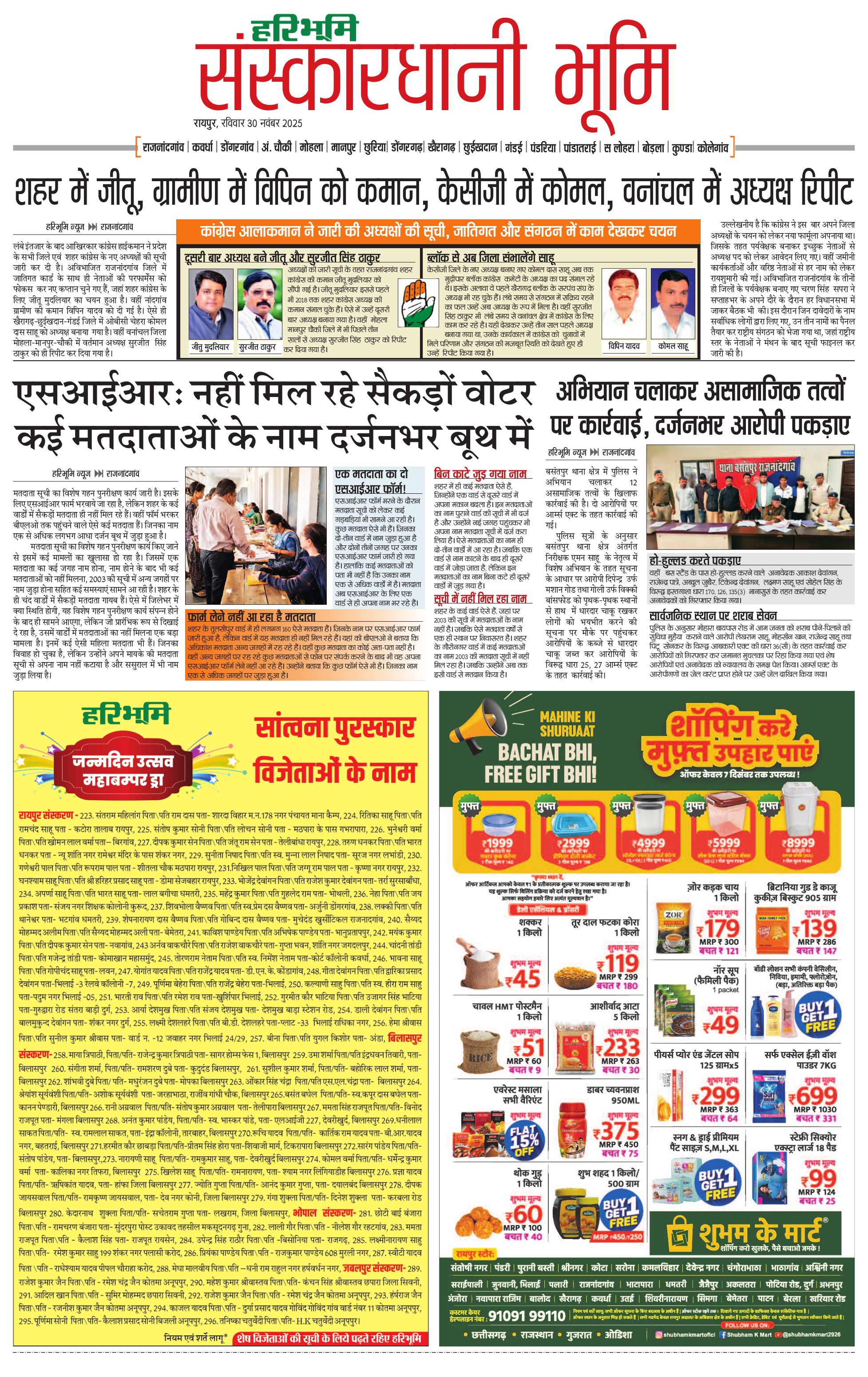 संस्कारधानी भूमि - 30 Nov 2025 - - Page 1