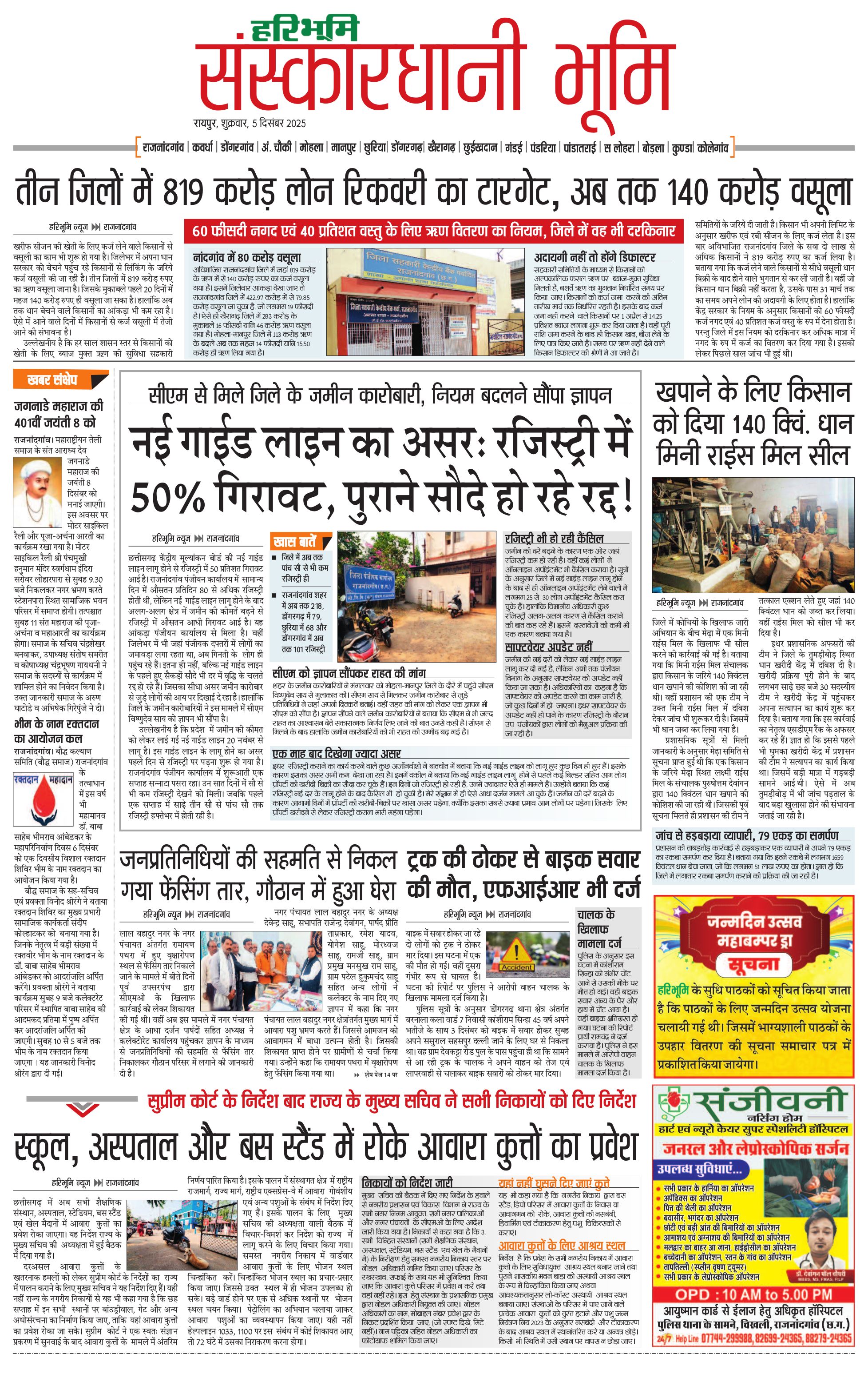 संस्कारधानी भूमि - 05 Dec 2025 - - Page 1