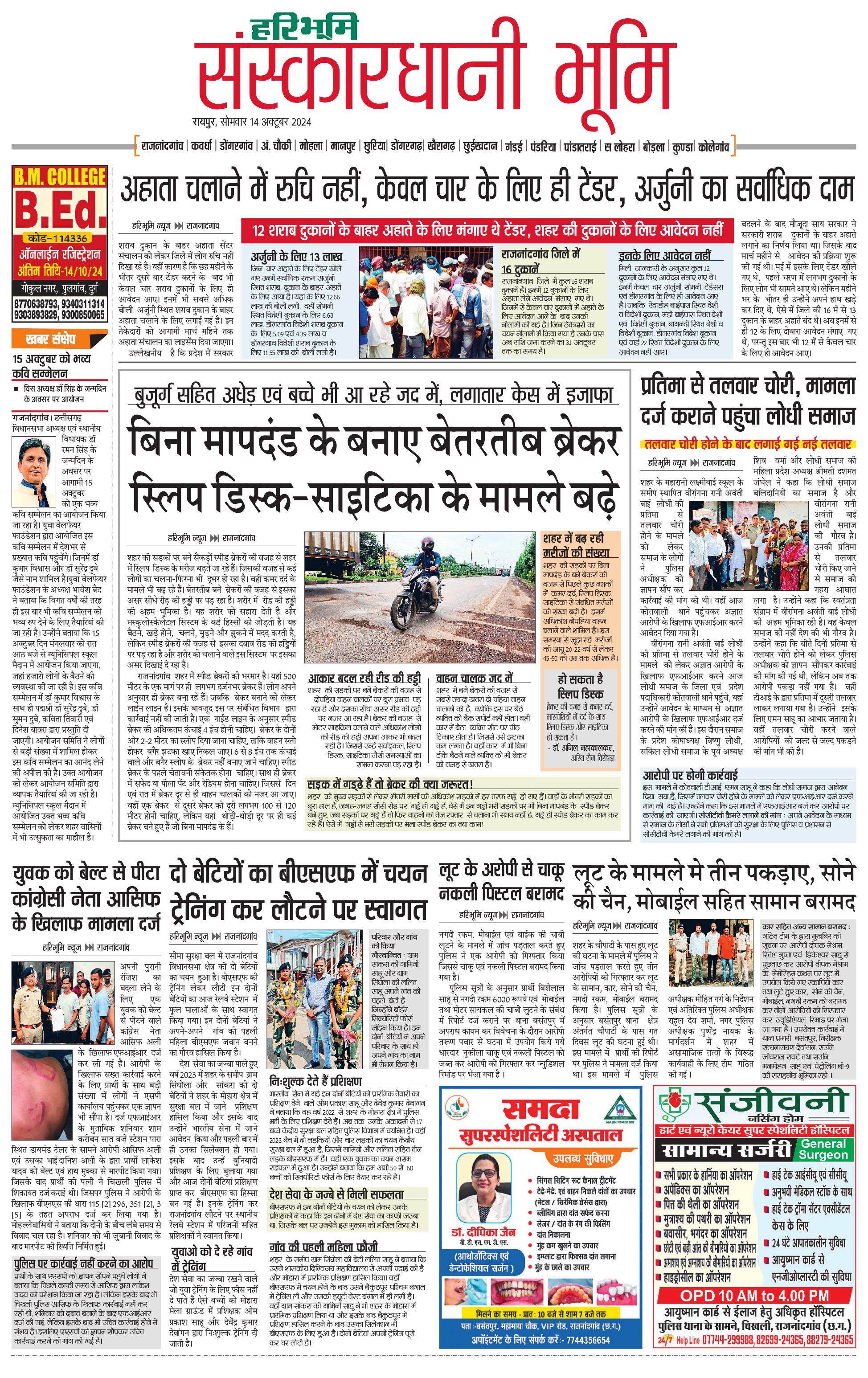 संस्कारधानी भूमि - 14 Oct 2024 - - Page 1