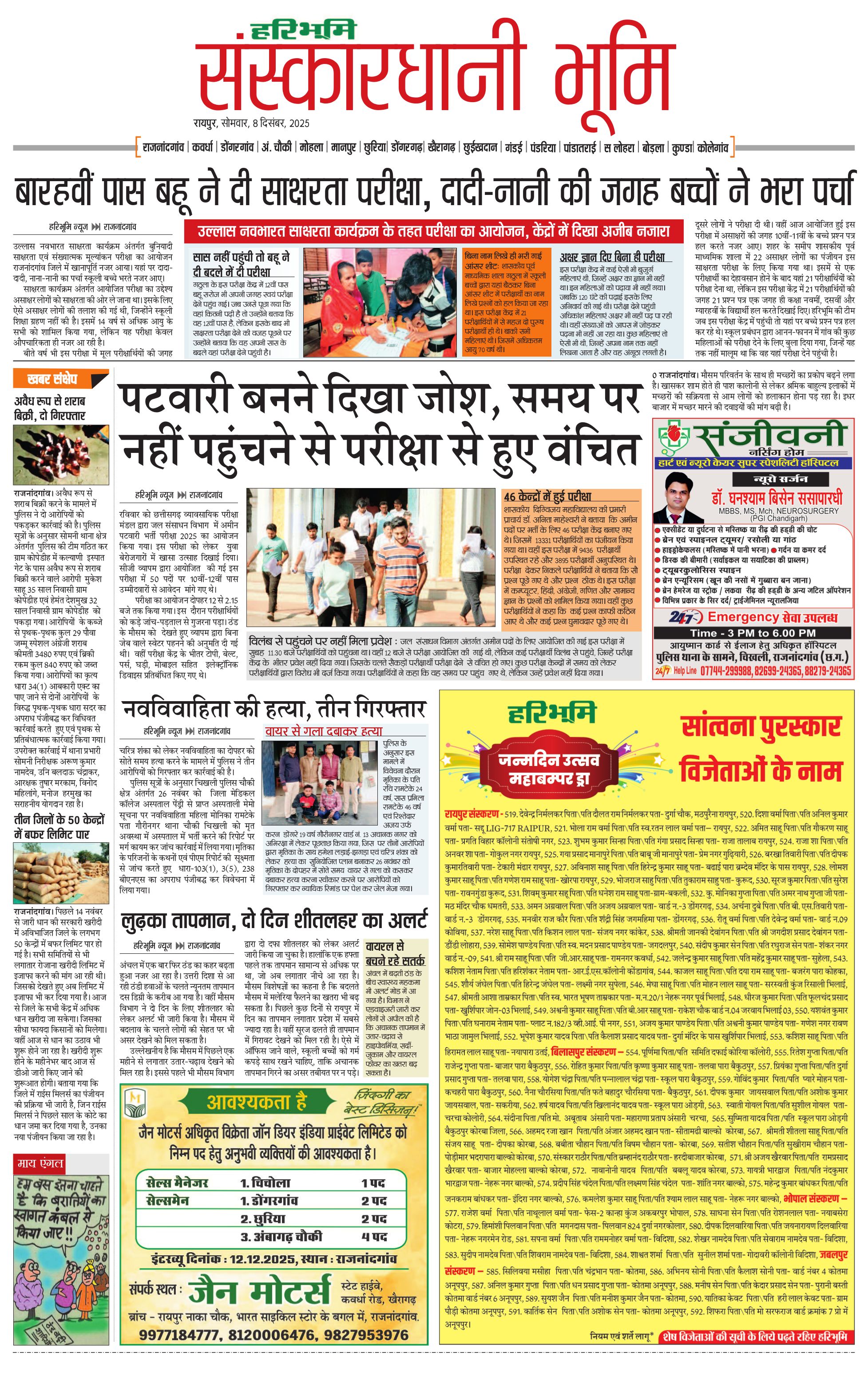संस्कारधानी भूमि - 08 Dec 2025 - - Page 1
