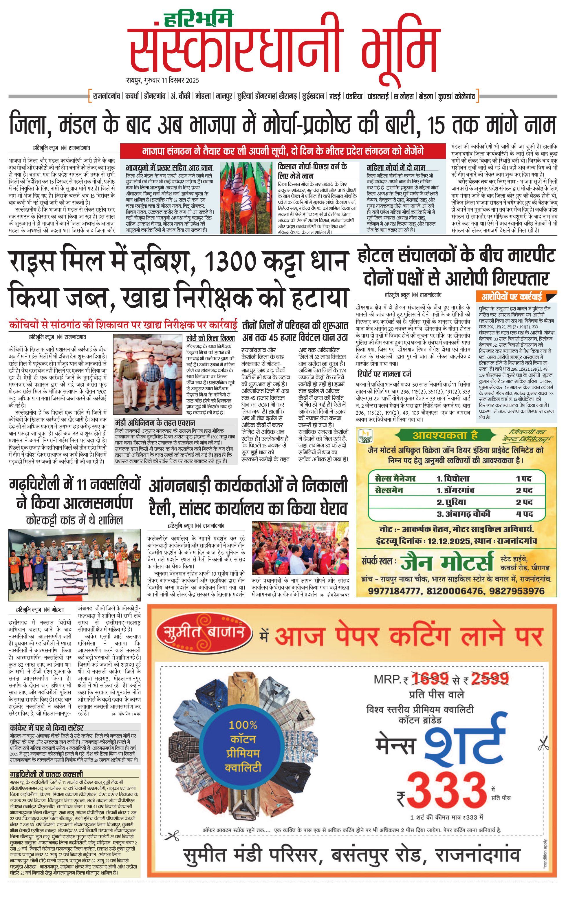 संस्कारधानी भूमि - 11 Dec 2025 - - Page 1