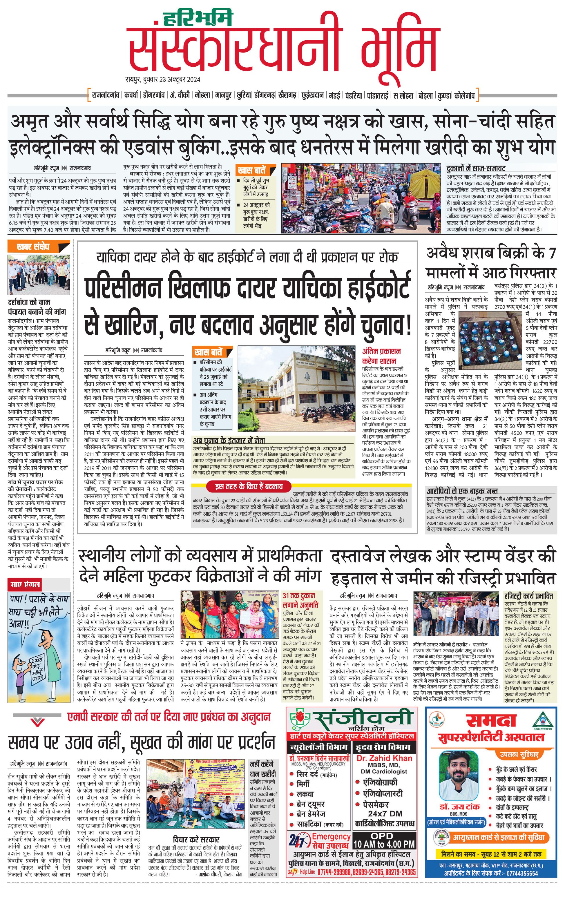 संस्कारधानी भूमि - 23 Oct 2024 - - Page 1