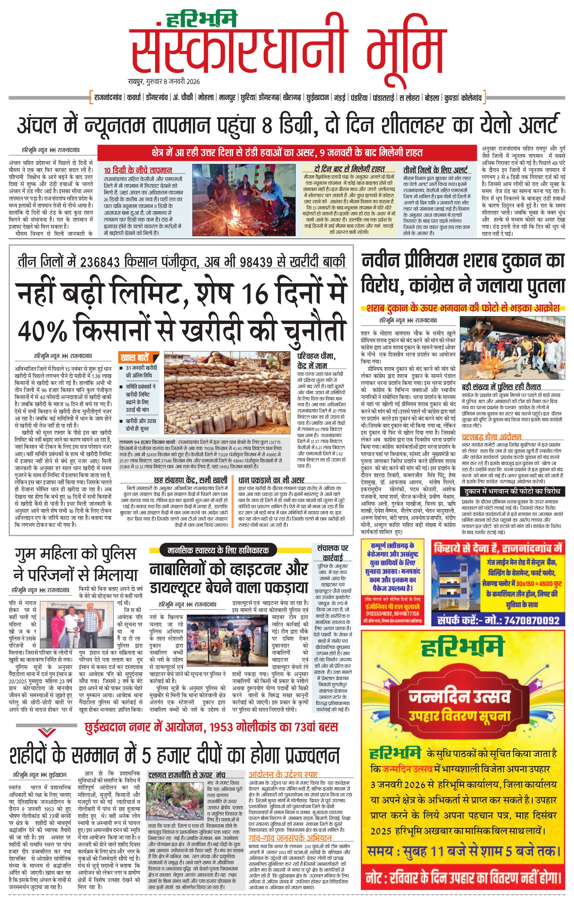 संस्कारधानी भूमि - 08 Jan 2026 - - Page 1