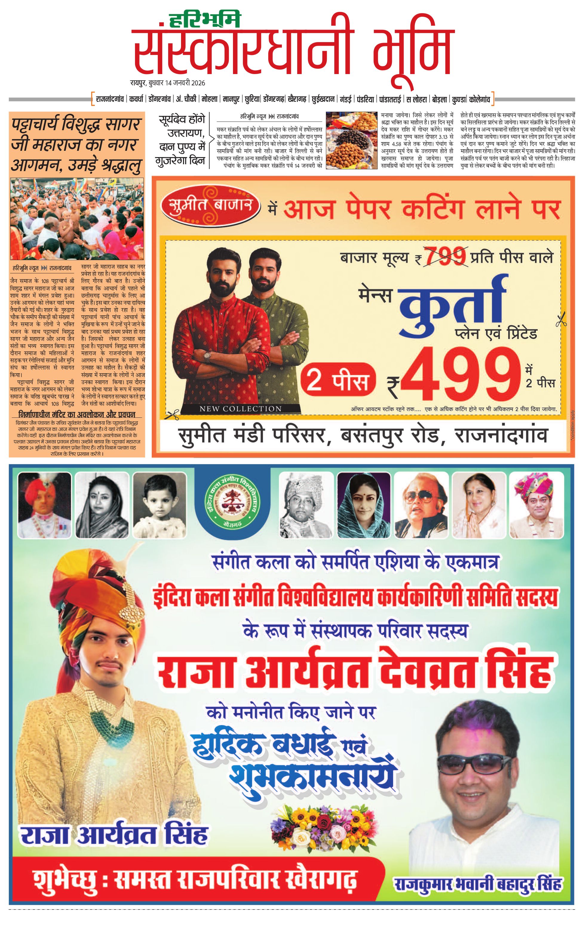 संस्कारधानी भूमि - 14 Jan 2026 - - Page 1